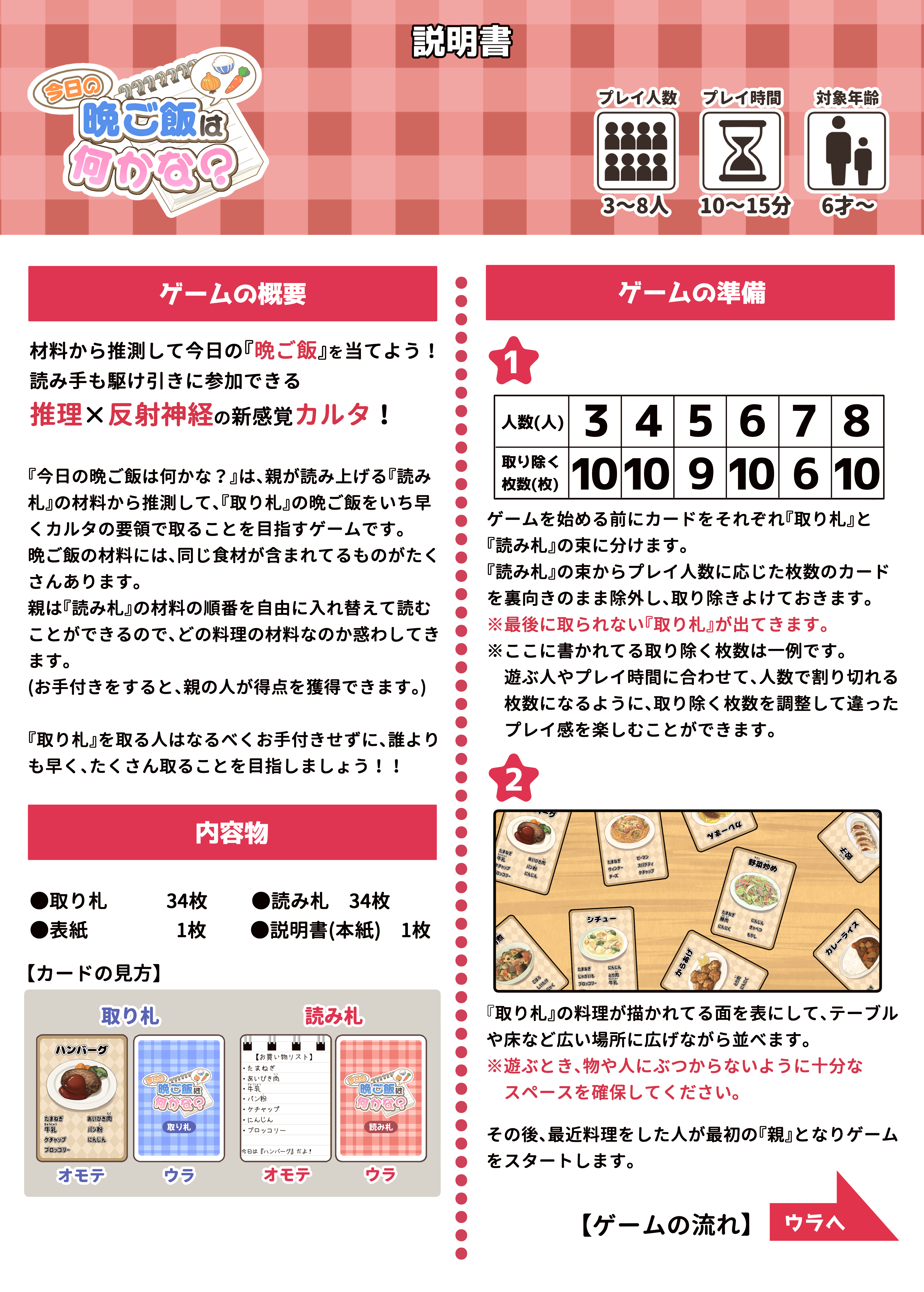 | プレイ人数 | 3〜8人 | プレイ時間 | 10〜15分 |