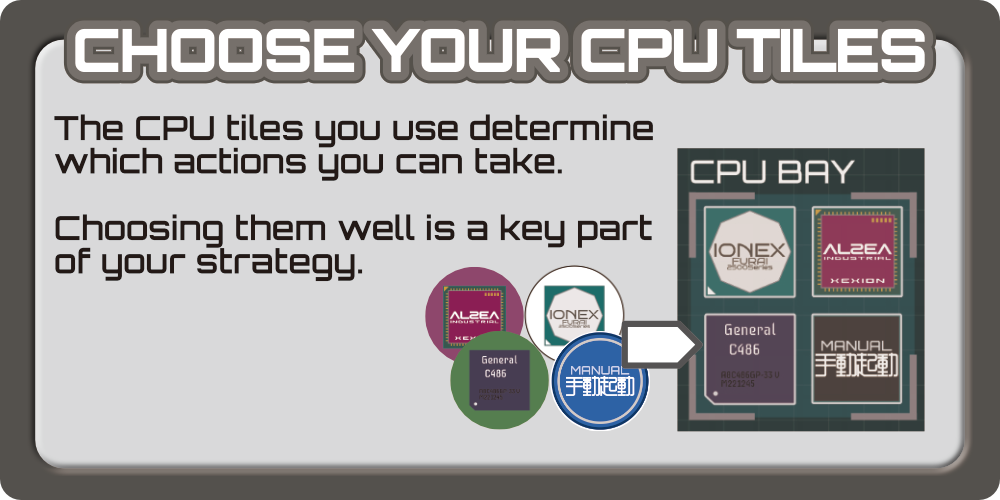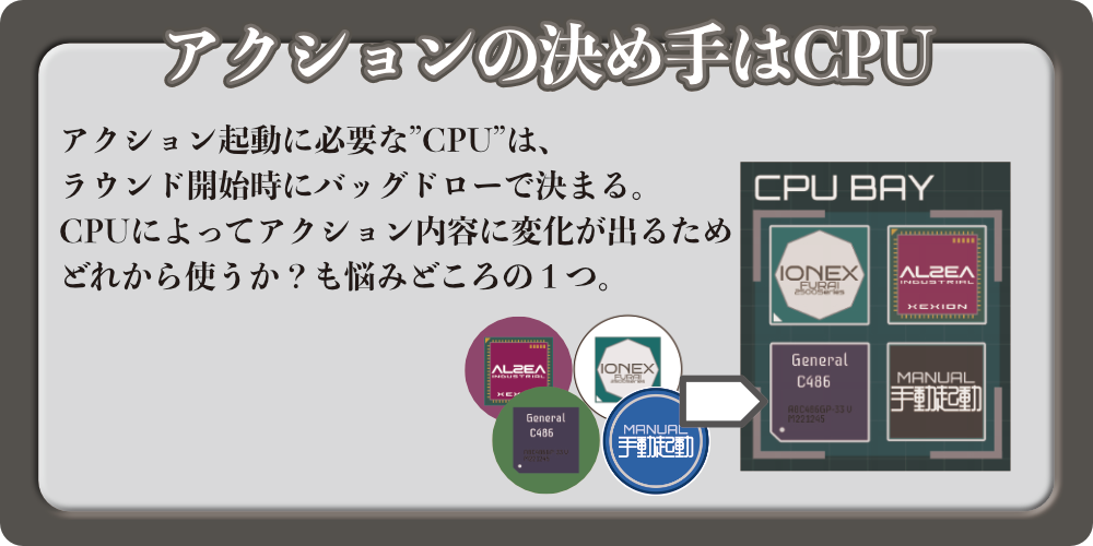 ラウンドの開始時、プレイヤーは共有バッグからアクショントークンであるCPUを引き、それらを各アクションに割り当て実行します。