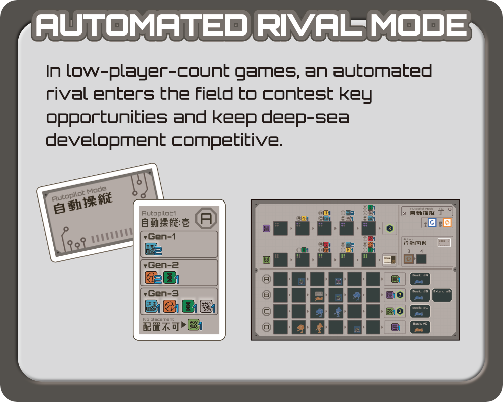 Nereus: Abyssal Blue を1〜2人で遊ぶ時は、仮想敵「自動操縦」モードを加えることができます。