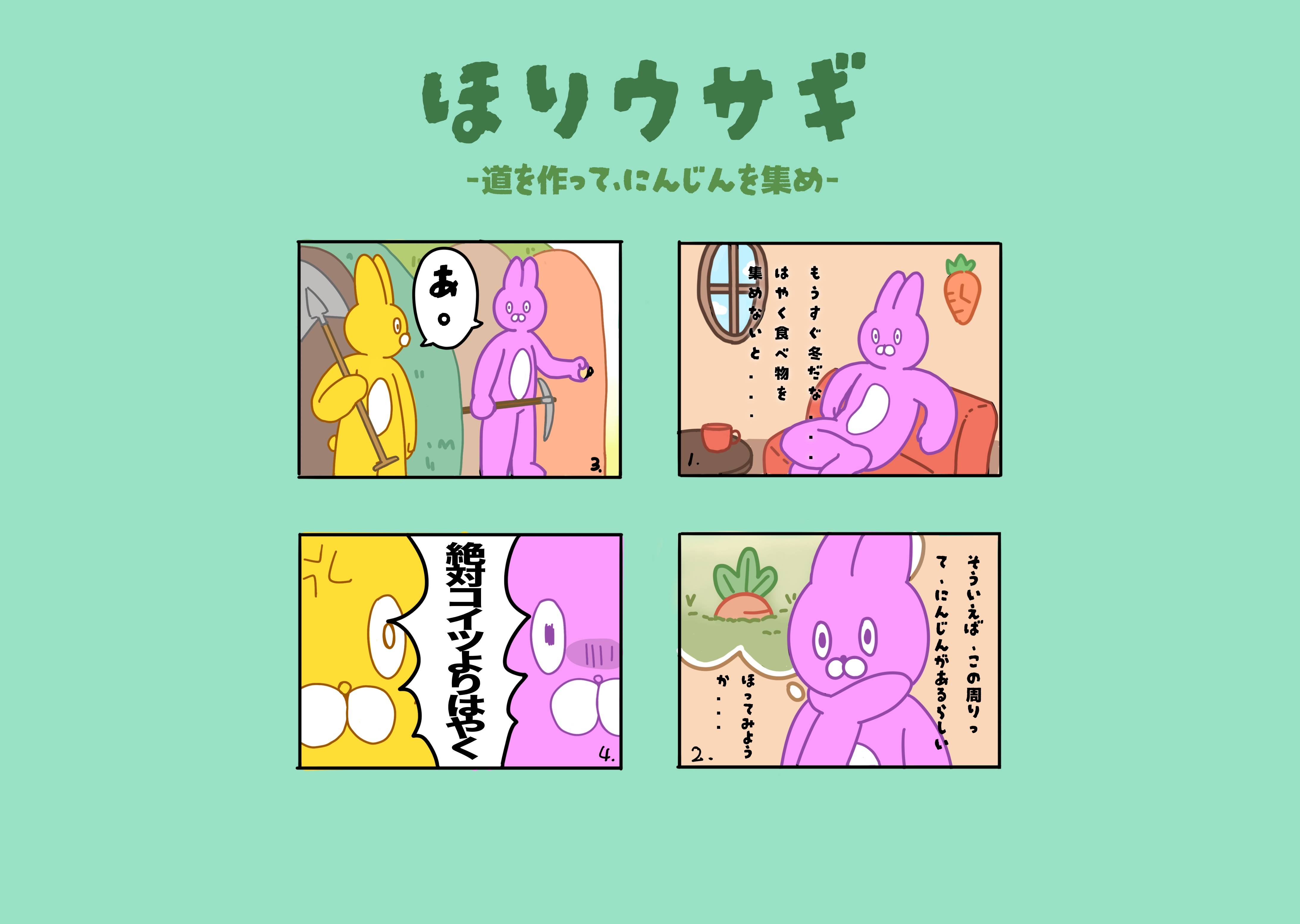掘って、跳ねて、にんじん奪い合い! ぴょんぴょんスピード勝負のうさぎ対戦ゲーム!