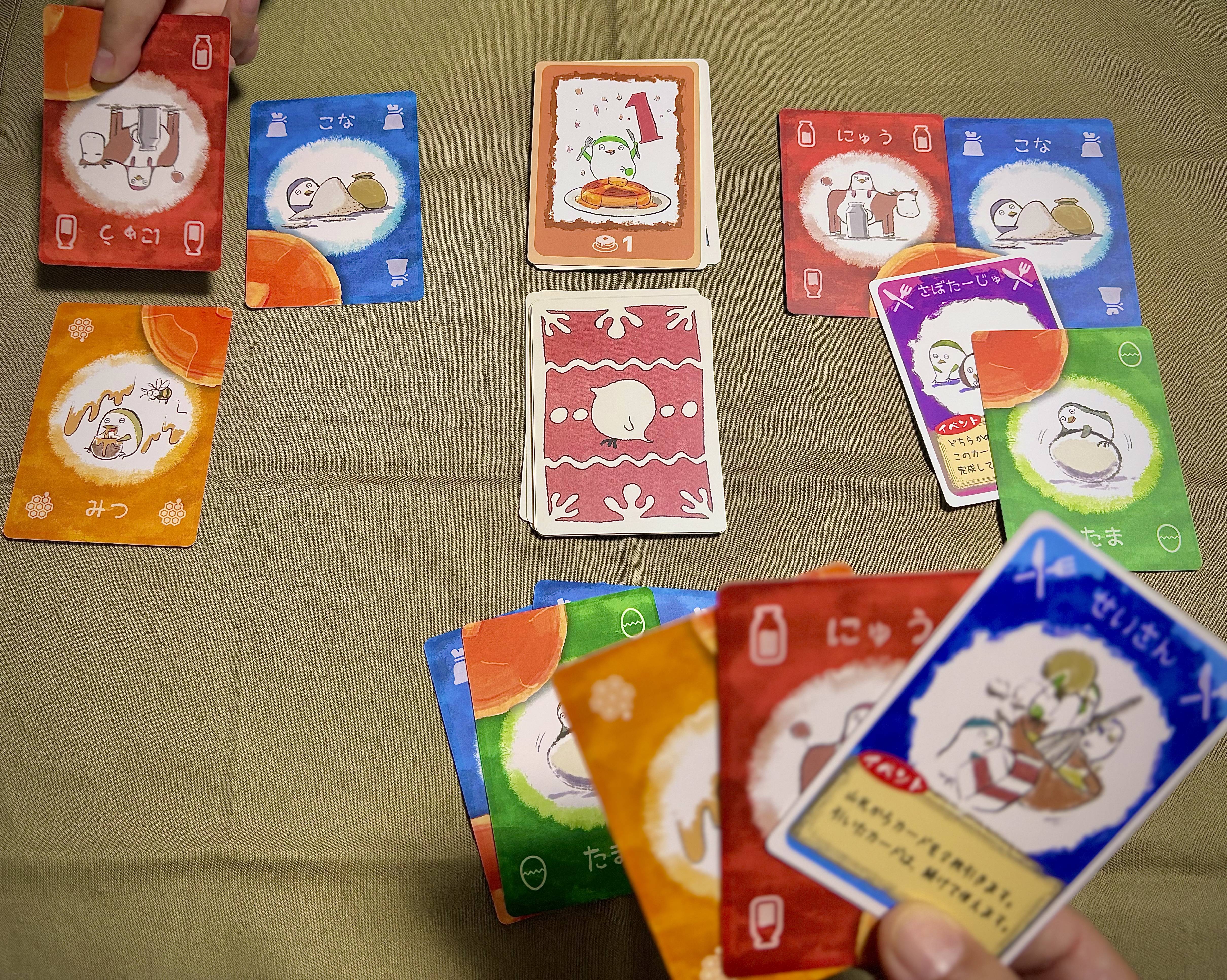 • 3種類のイベントカードの使い方がゲームの鍵を握る。得点が高い時にホットケーキを完成させるのがポイントだよ!