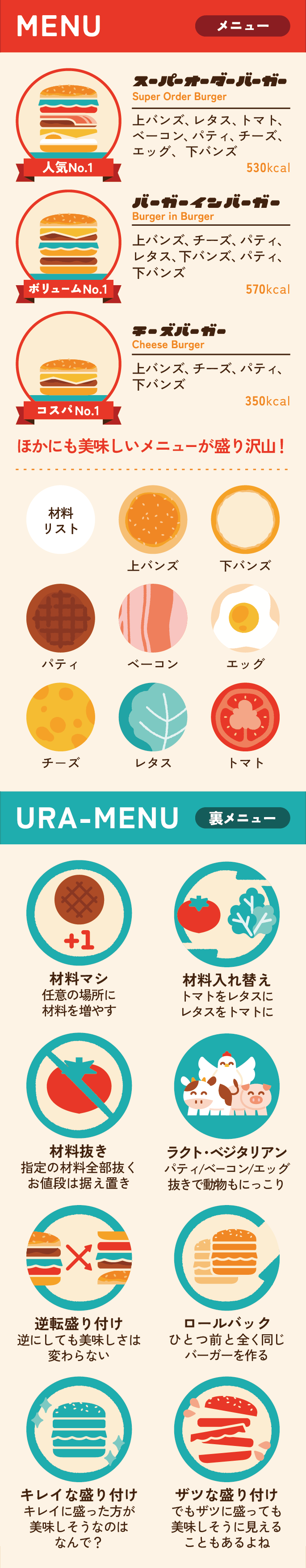 - 全員協力のバーガー作り、だけど最後に勝つのはひとりだけ!
