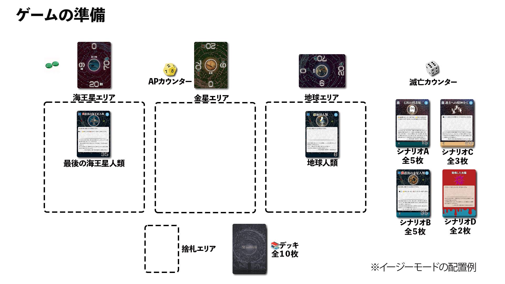 各惑星エリアに【👥人類カード】が一つもない状態になると敗北です。