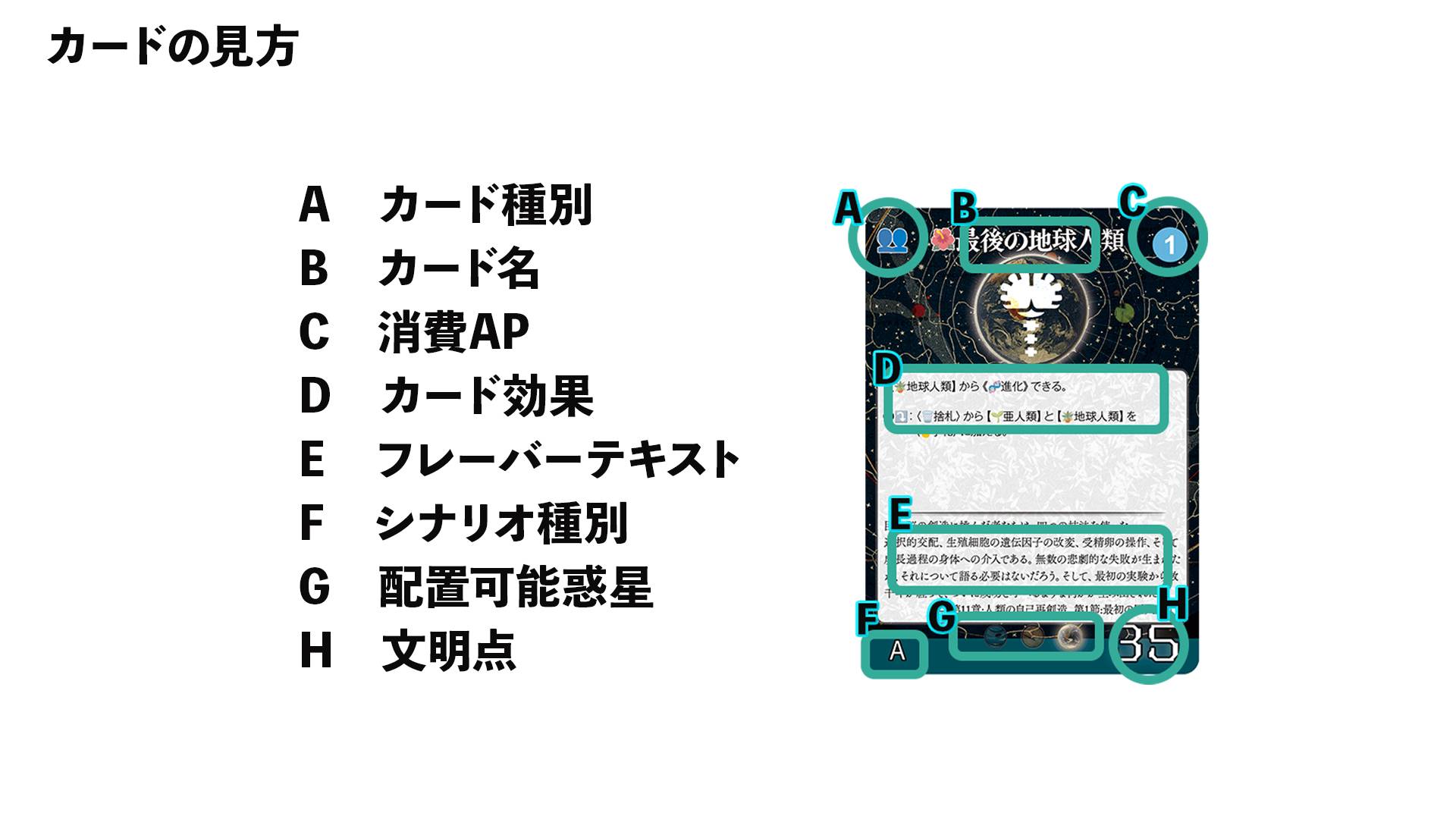 対象になる惑星の条件は、【👥人類カード】か【💽文明カード】が一枚以上置かれていること。