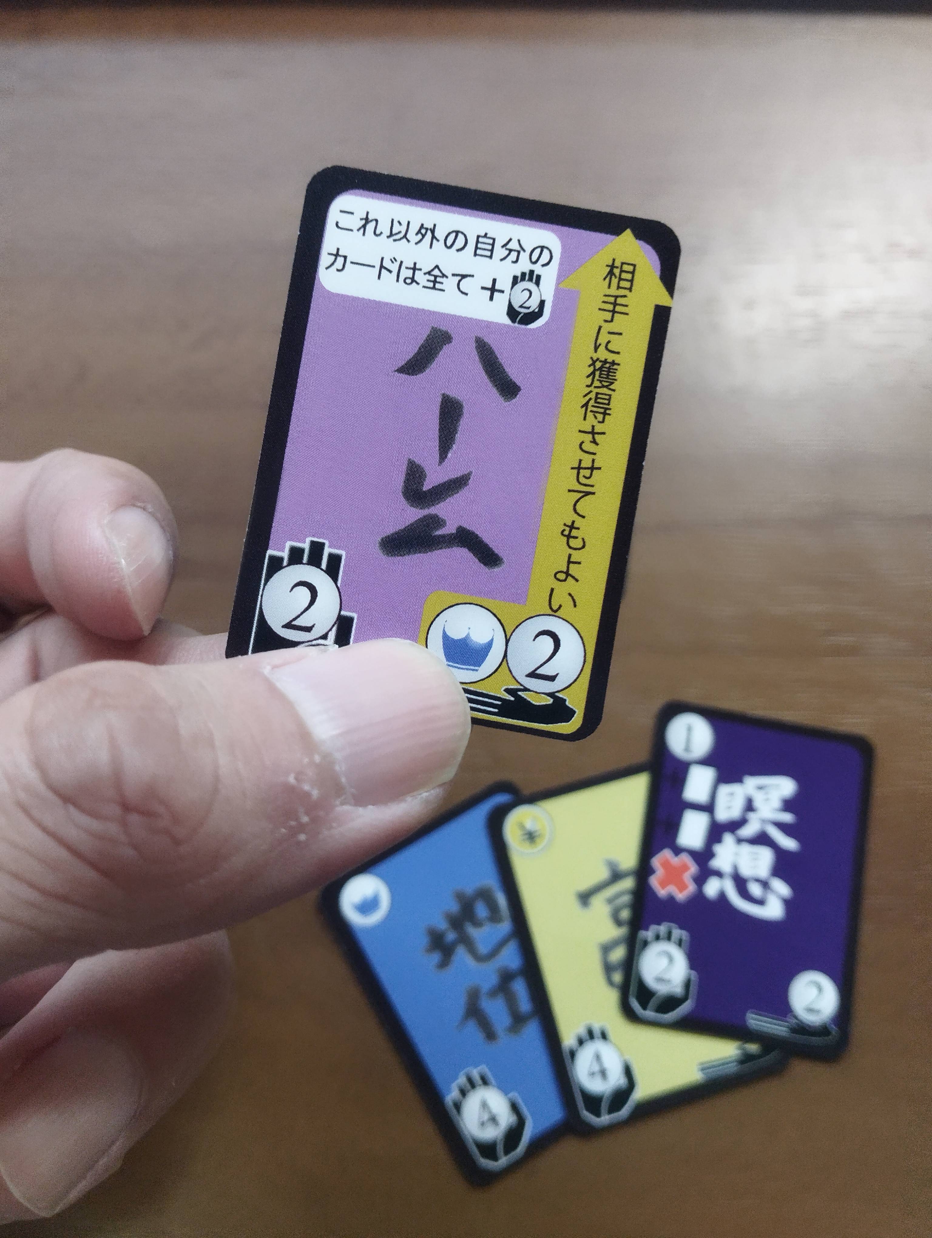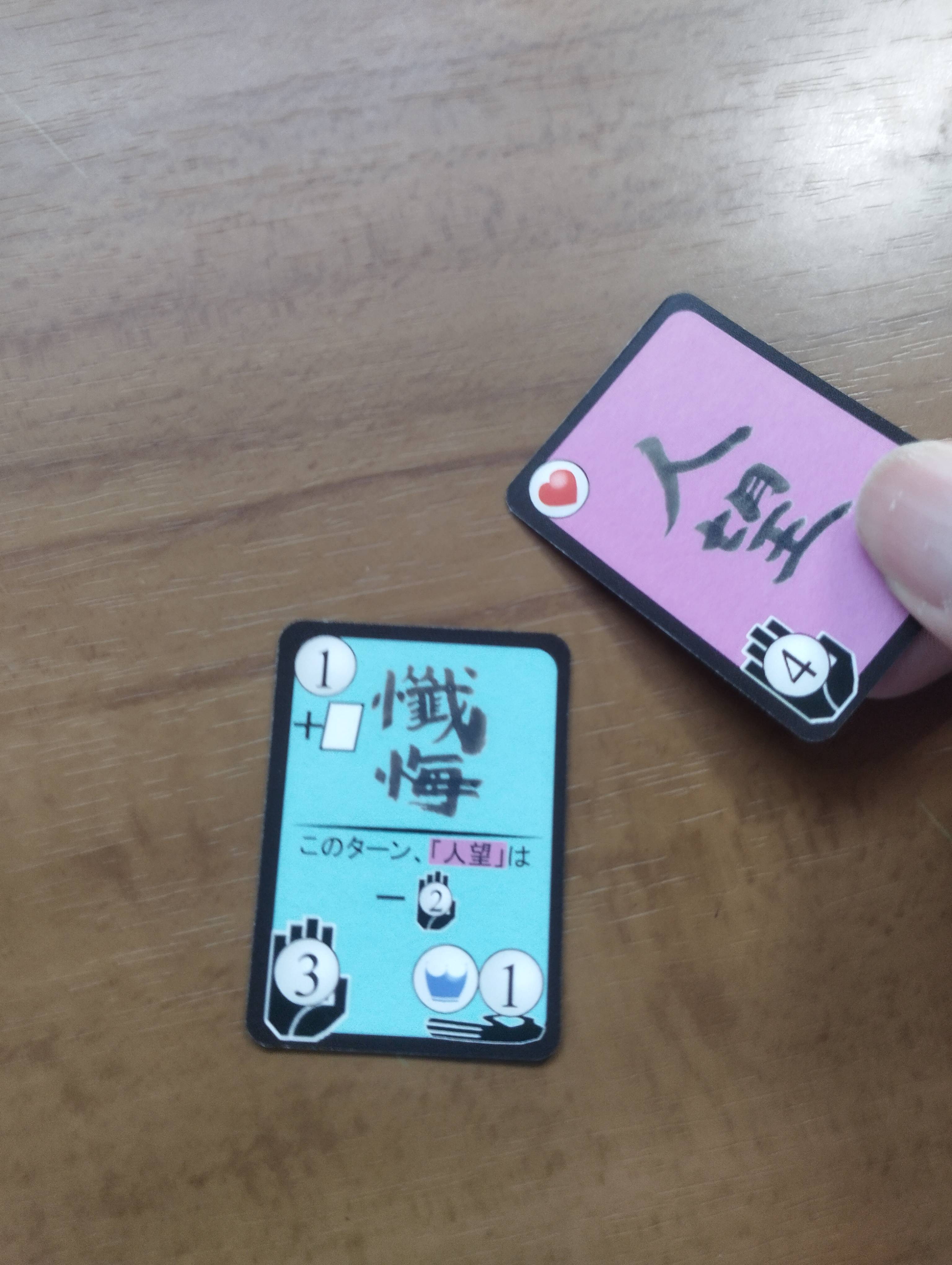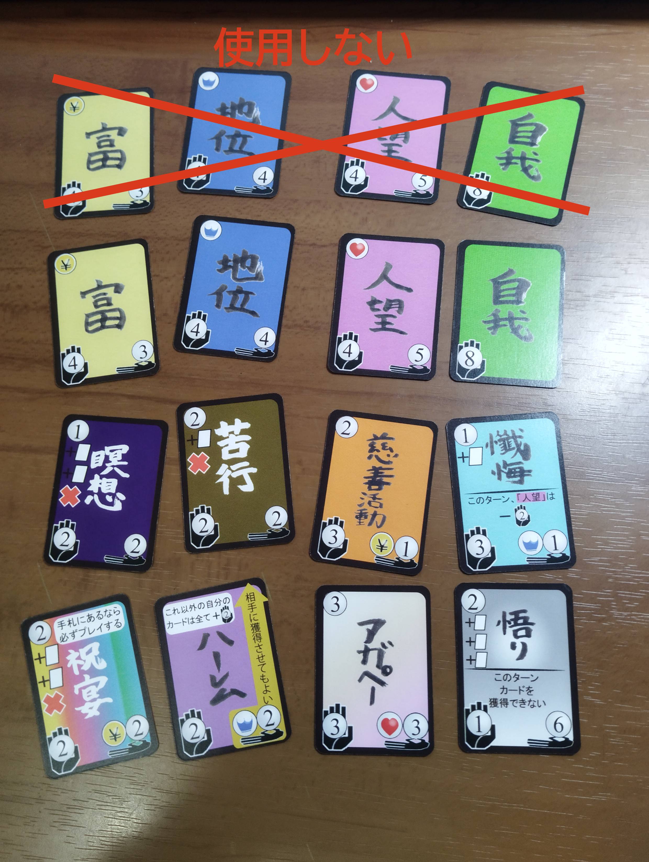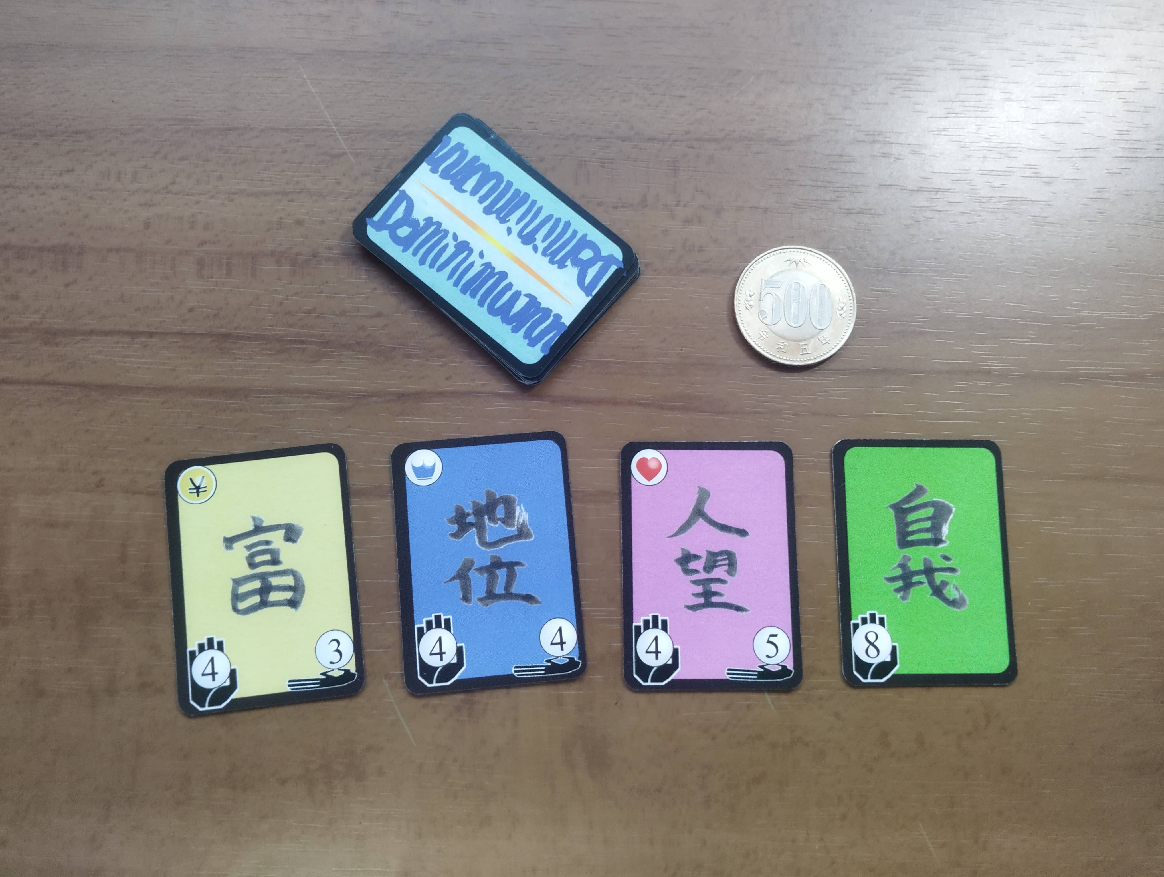 プレイヤーの初期デッキは「富」「地位」「人望」そして「自我」の4枚。