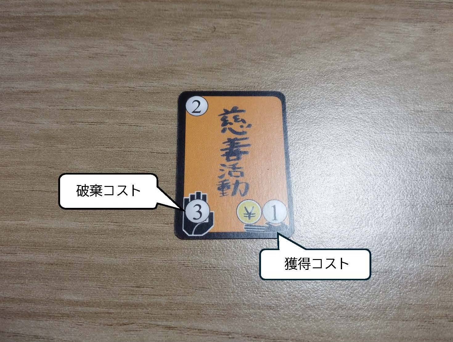 右下が「獲得コスト」左下が「破棄コスト」です。