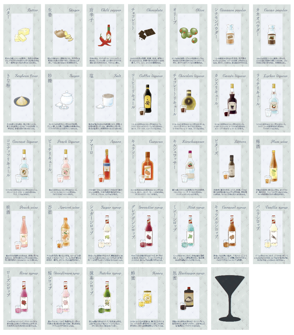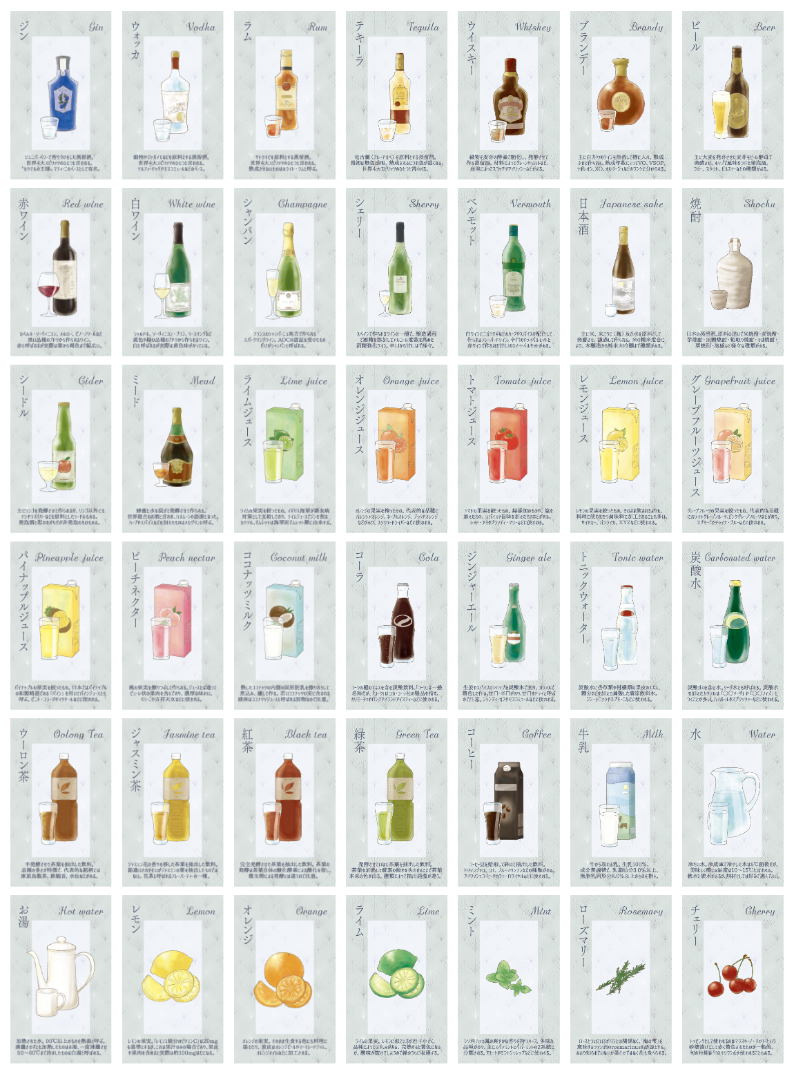 - 様々な材料カードを組み合わせ、カクテルのレシピを作ろう