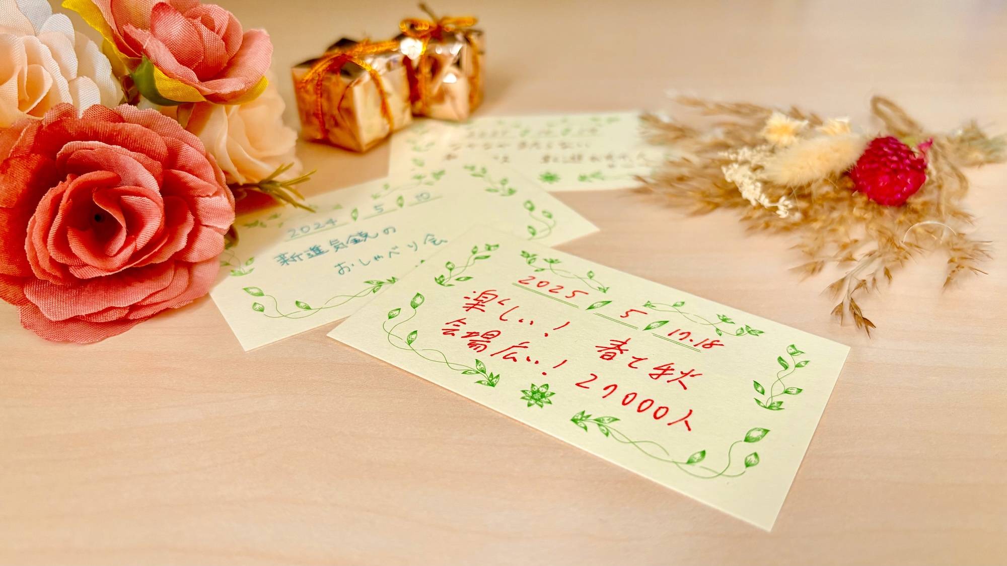 けれど、あえてその場で書き合えば、記憶がその瞬間に花ひらきます。