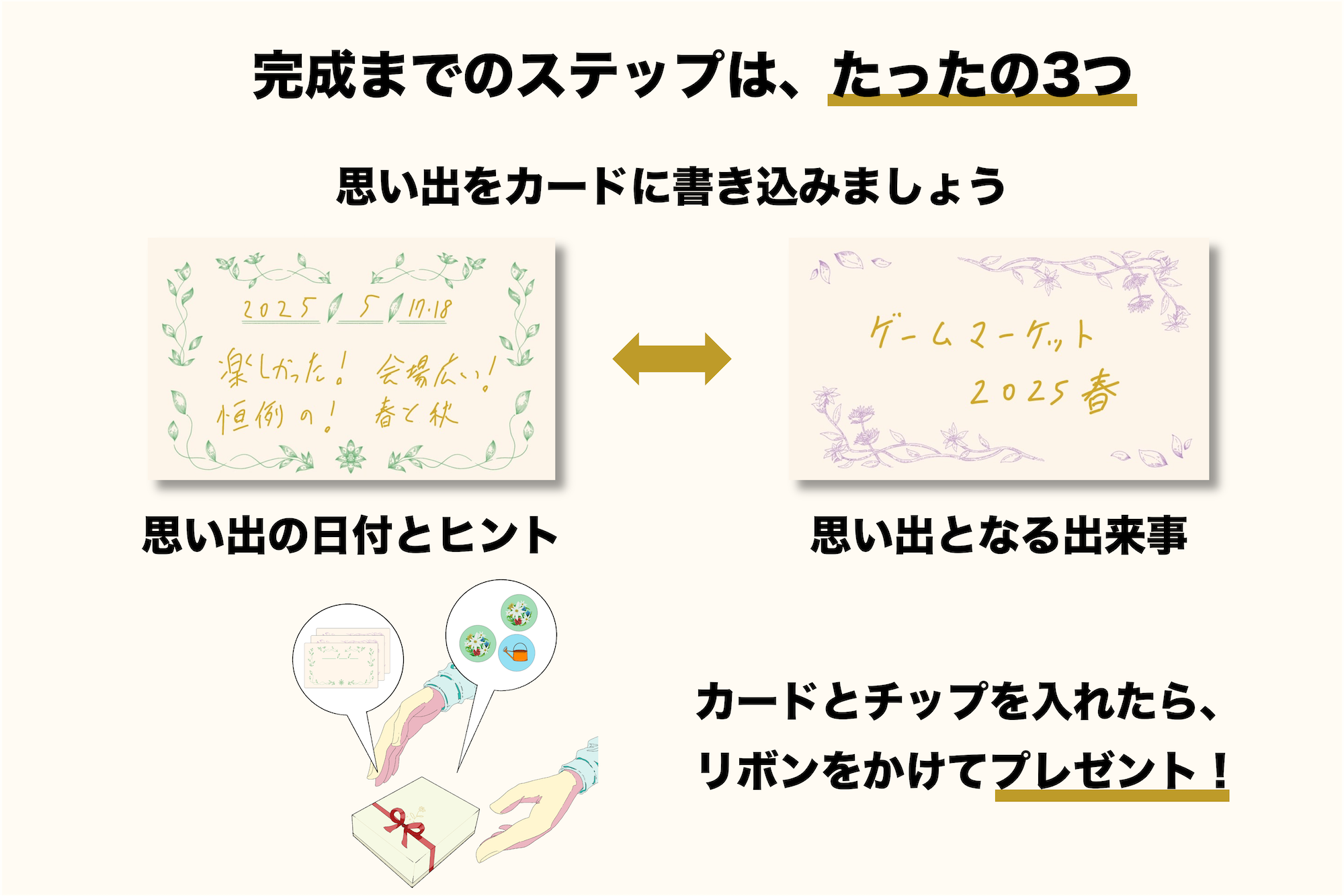 プレゼントを贈る人が、相手との思い出をカードに書き込みます。