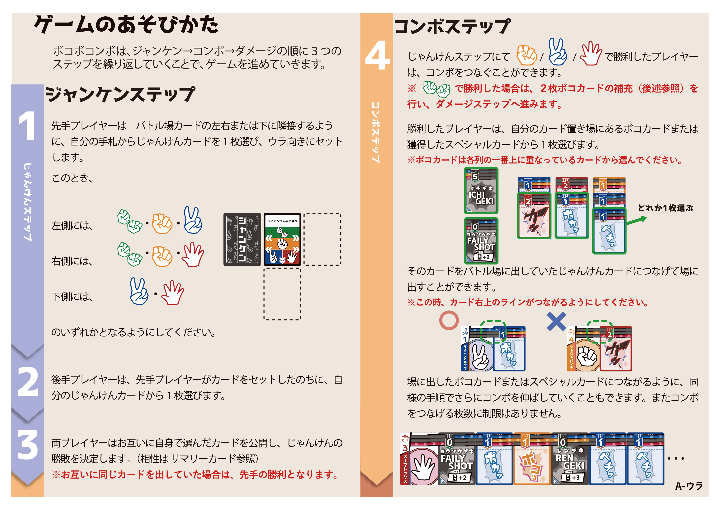 - 『ボコボコンボ』はコンボをつないで相手をボッコボコにするじゃんけんゲームです。