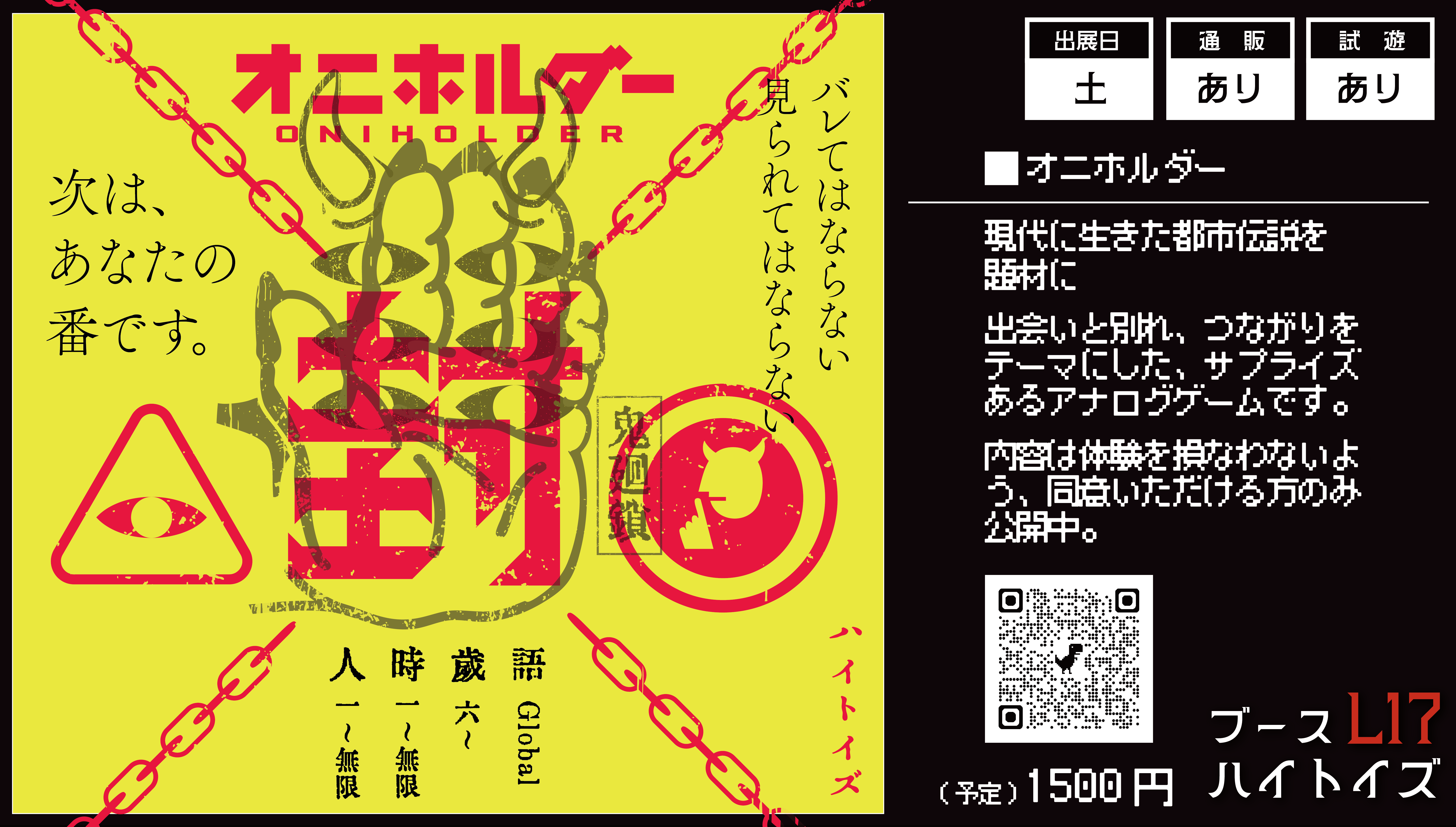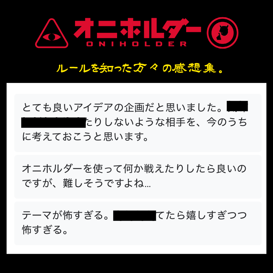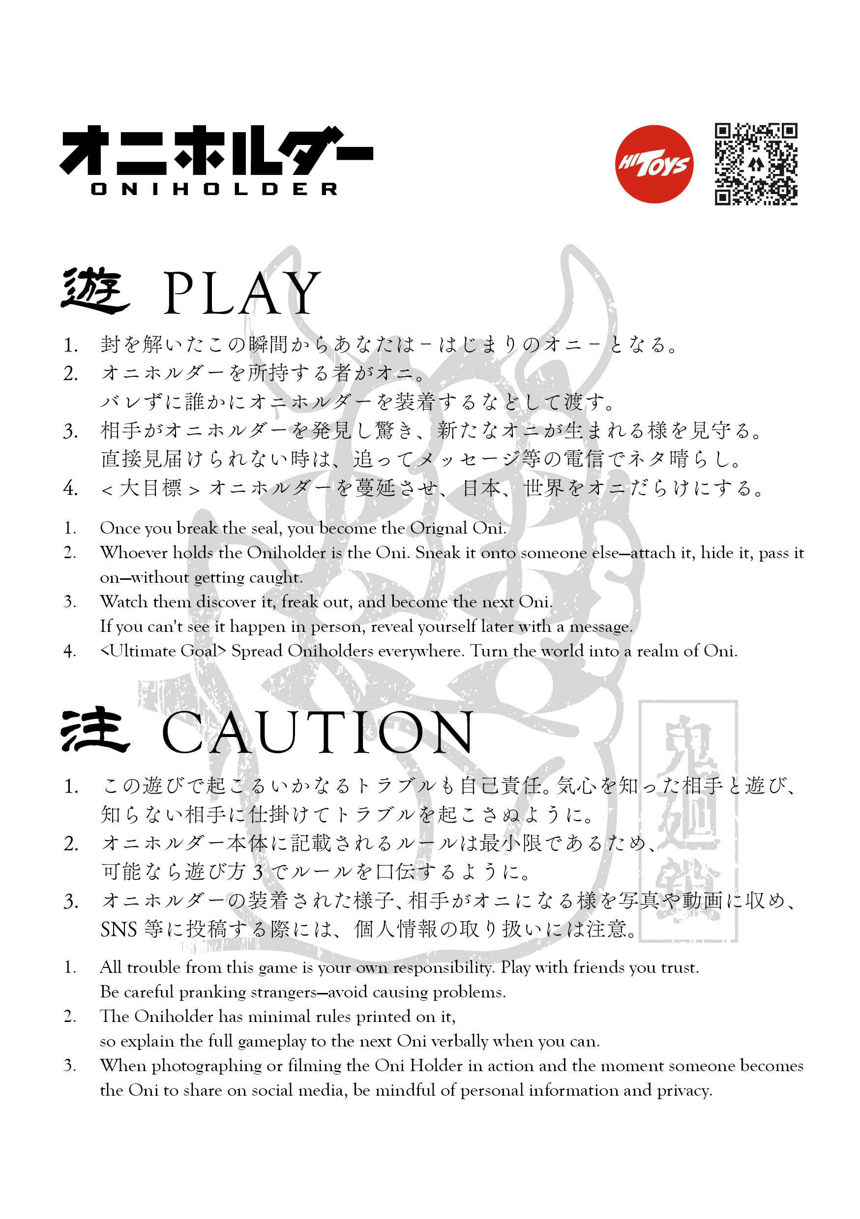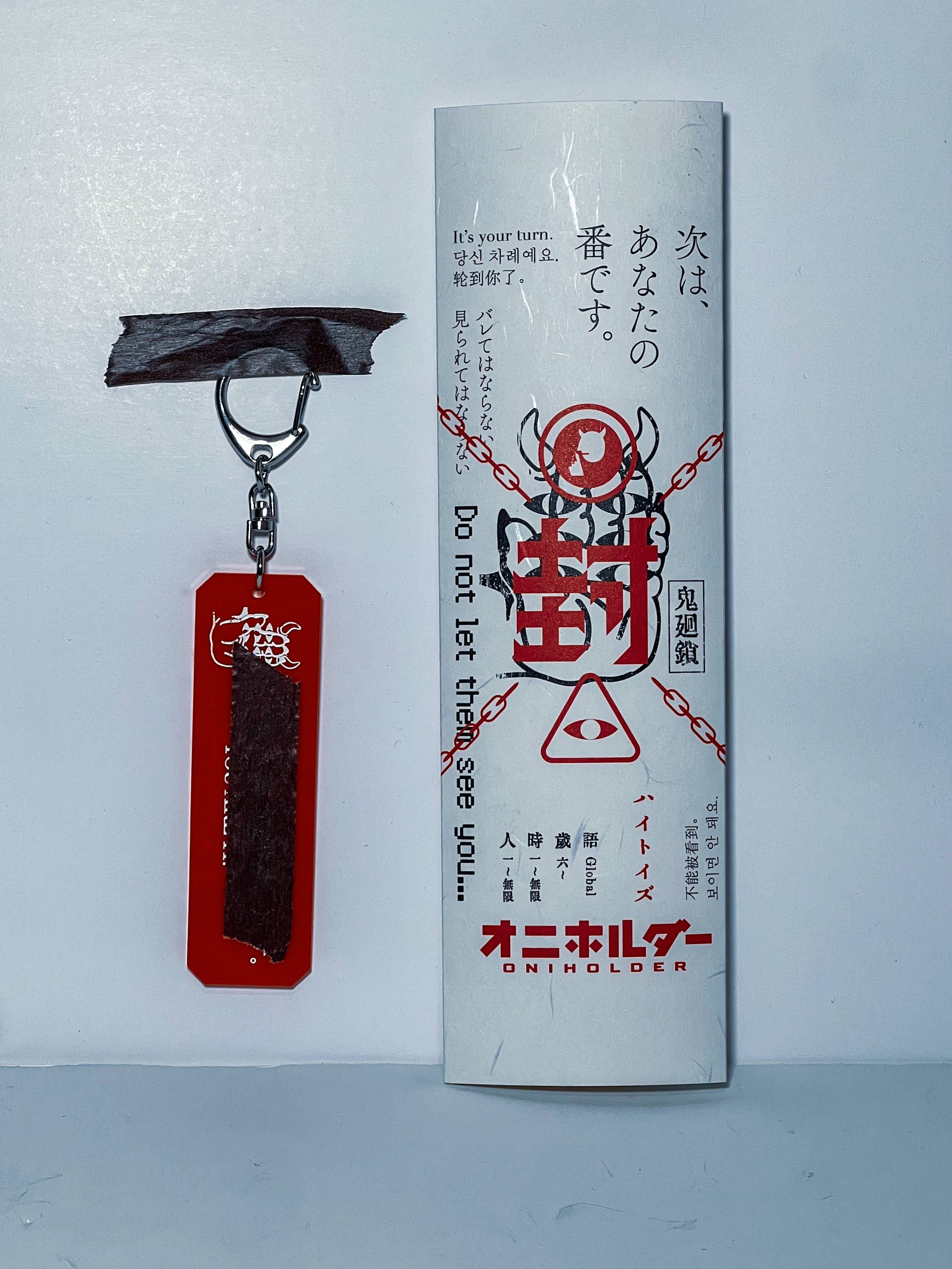 This is the design of Oniholder (acrylic keychain). All rules are written here, encouraging participation from those who obtain it. *Initially there was a plan to include a QR code, but we abolished it, judging that it would increase potential risks like scams and make it too suspicious as an item for play. We appreciate your understanding.