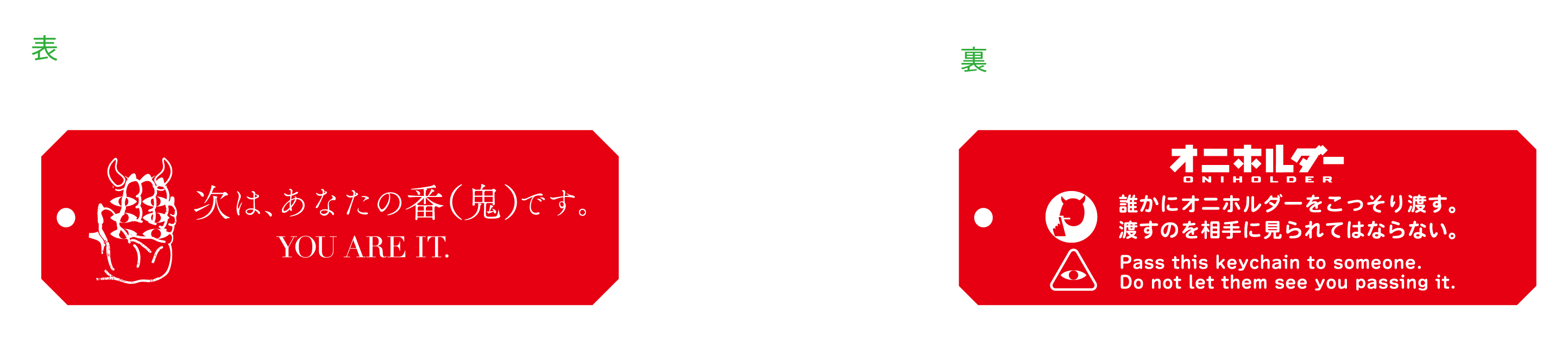 Oni Holder is an analog game that's "Chain Mail × Tag × Keychain." It's an attempt to create an analog game that propagates from person to person, like the cursed emails that were popular long ago.