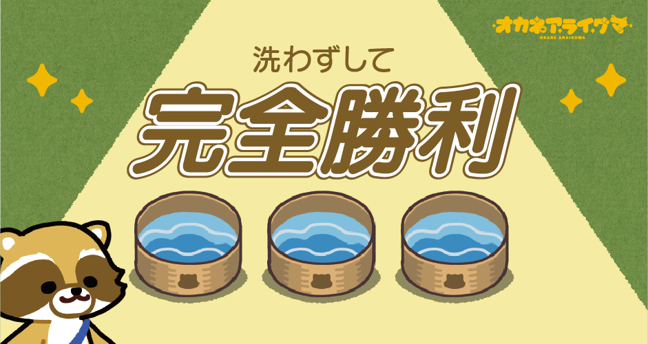 『オカネアライグマ』は、2人~6人で遊ぶことができる対戦型オカネ洗い争奪バトル!