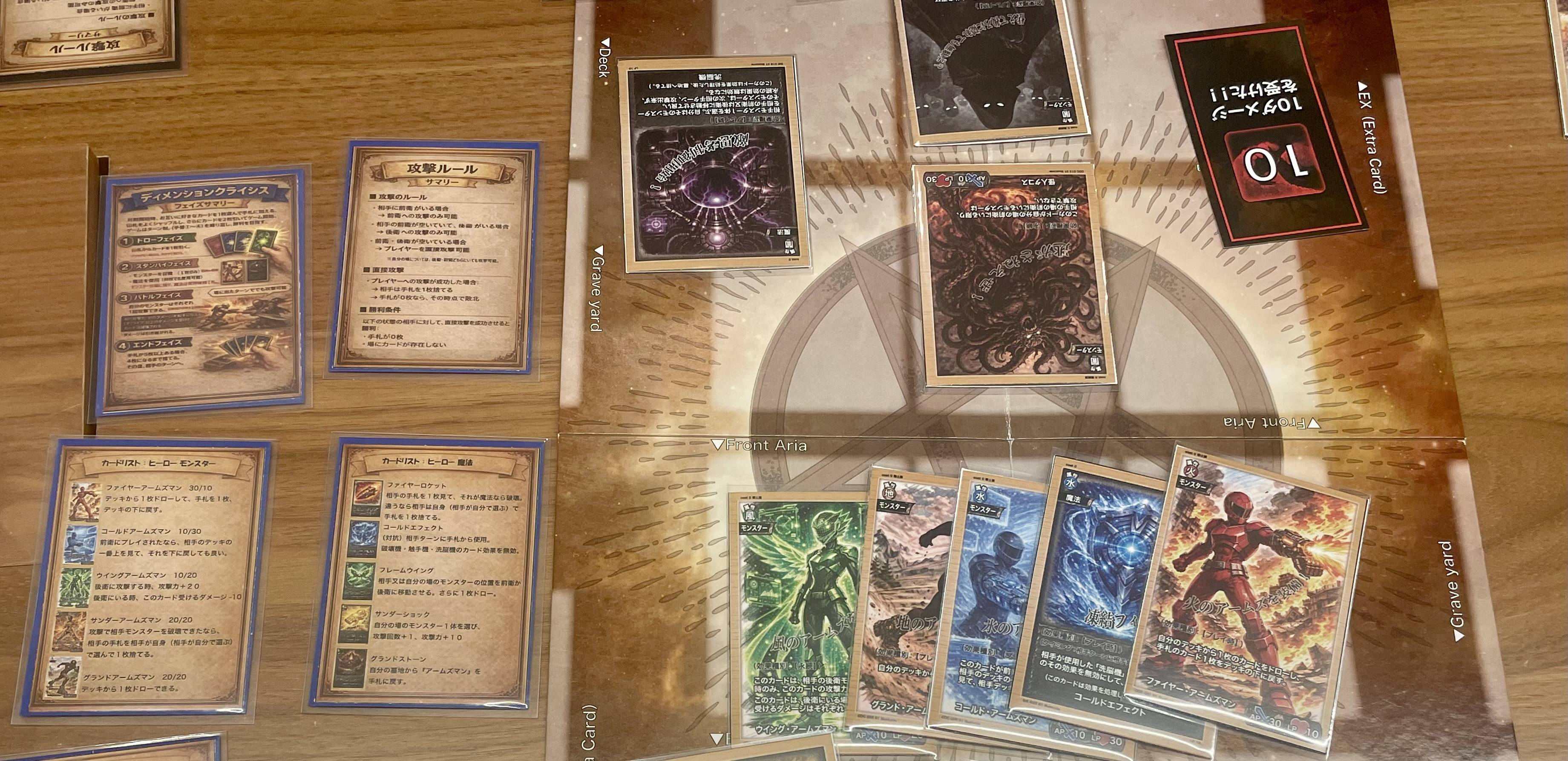 デッキは自分と相手で10枚ずつしかないのですが、その少なさを実感させないほど濃密に楽しめるゲームだと思いますっ