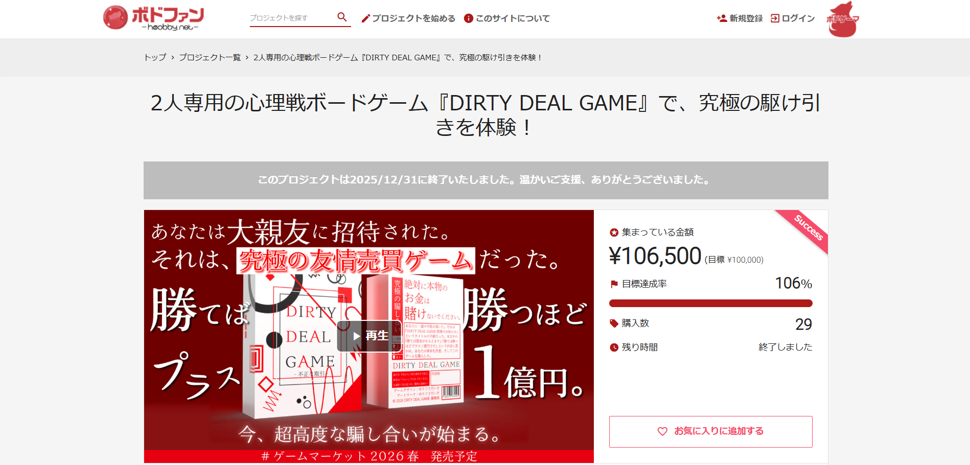 — DIRTY GAME【ボードゲーム公式】 (@DIRTYDEALGAME) January 3, 2026