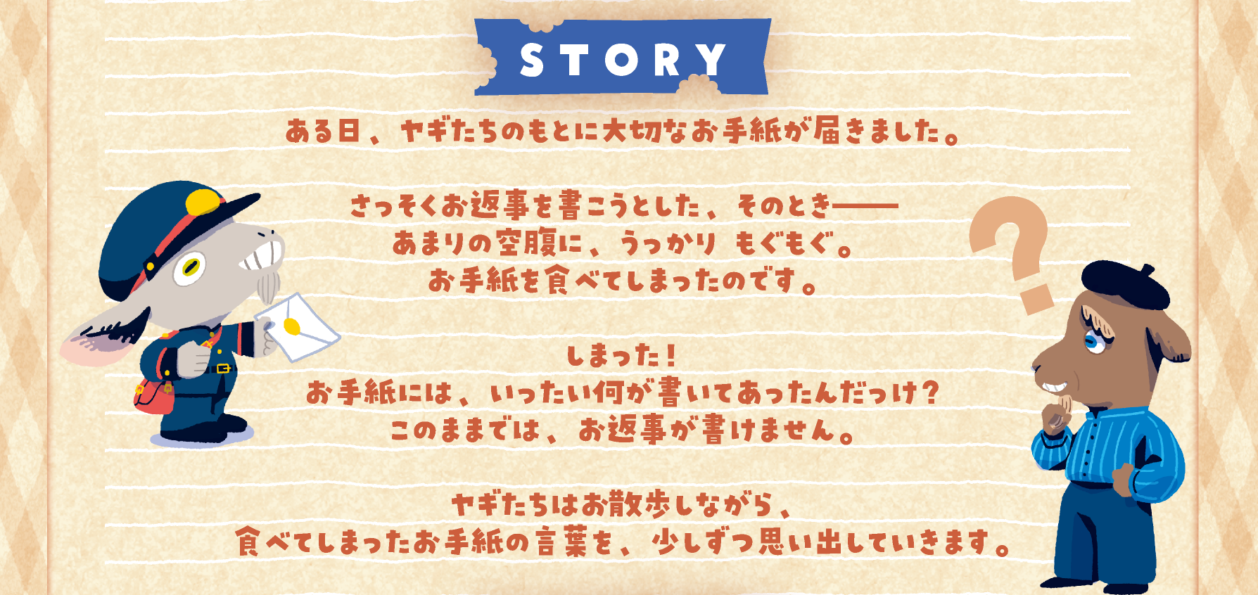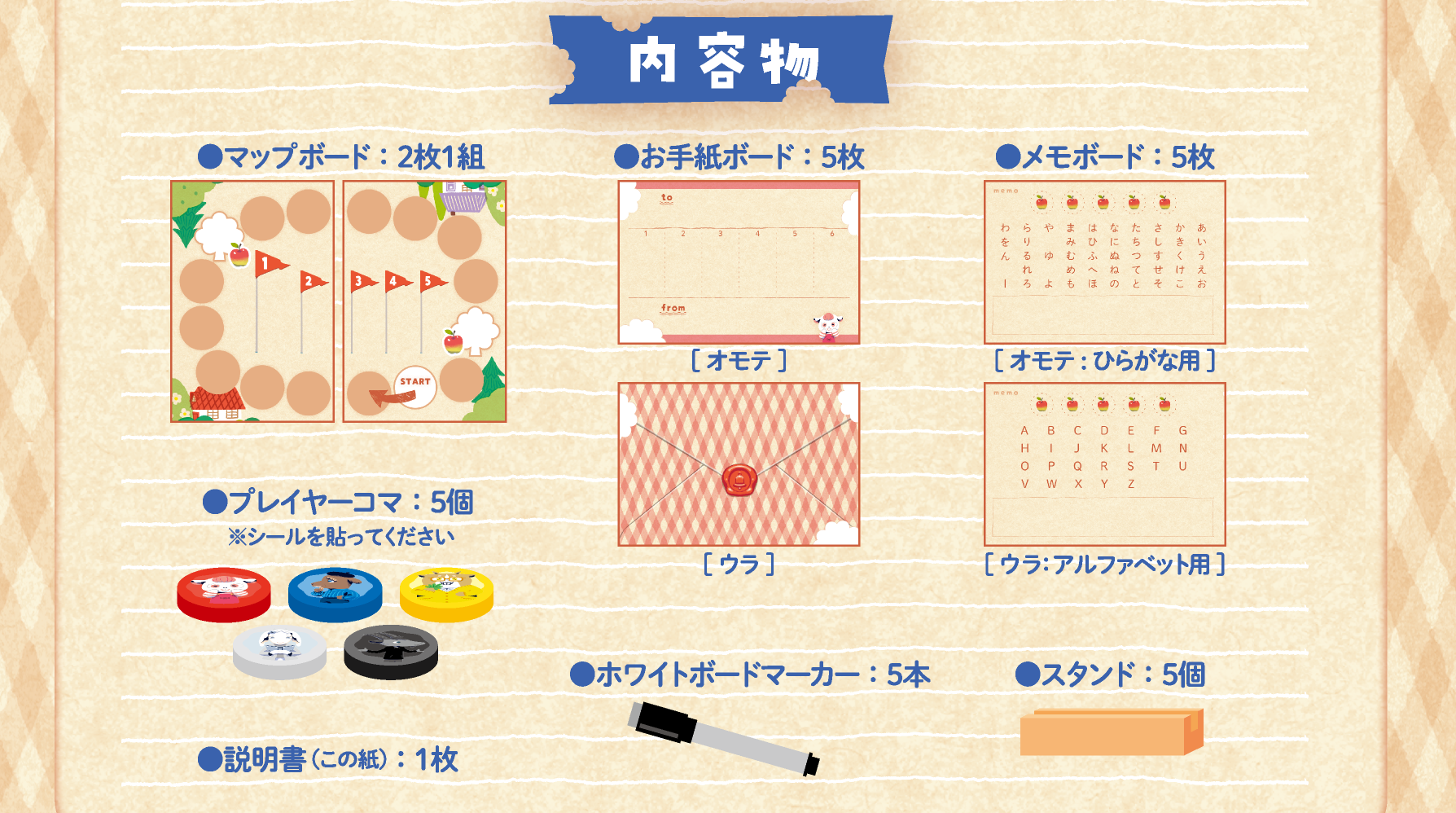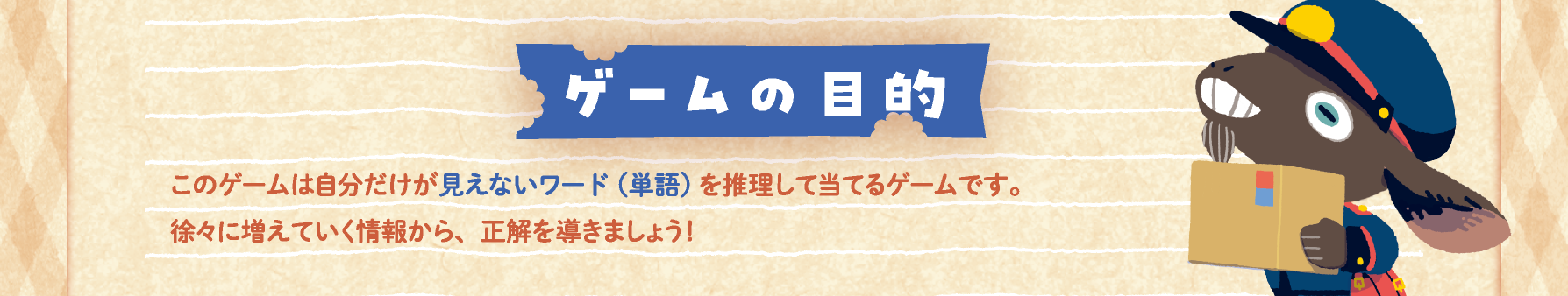 2026春 両 - M06 2025秋 土 - R10 K* @shiki_hskw 2026春 両 - M06 2026 Spring 2-5 15-30 12歳〜 ヤギのワード便 -Goat Got Letter- ¥2,000 たべたお手紙、なんだった? 対戦 ファンタジー ヤギのワード便 -Goat Got Letter- ゲーム概要 単語を推理する論理パズル ヒントを少しずつ集めて答えにたどり着いたときのアハ体験がたまらない! Wordle、Hit&Blow が好きな人にオススメ プレイ人数 2〜5人 プレイ時間15〜30分 対象年齢12歳〜 価格2,000円 発売時期2026春 予約 可 ゲームデザインハセカワ イラスト・DTPモモーヌ ゲーム詳細 詳しいルールを知りたい方は、是非ルールブックをご覧ください!ルールブック ゲーム体験 スタンダード, 推理, ボードゲーム, この記事をシェア