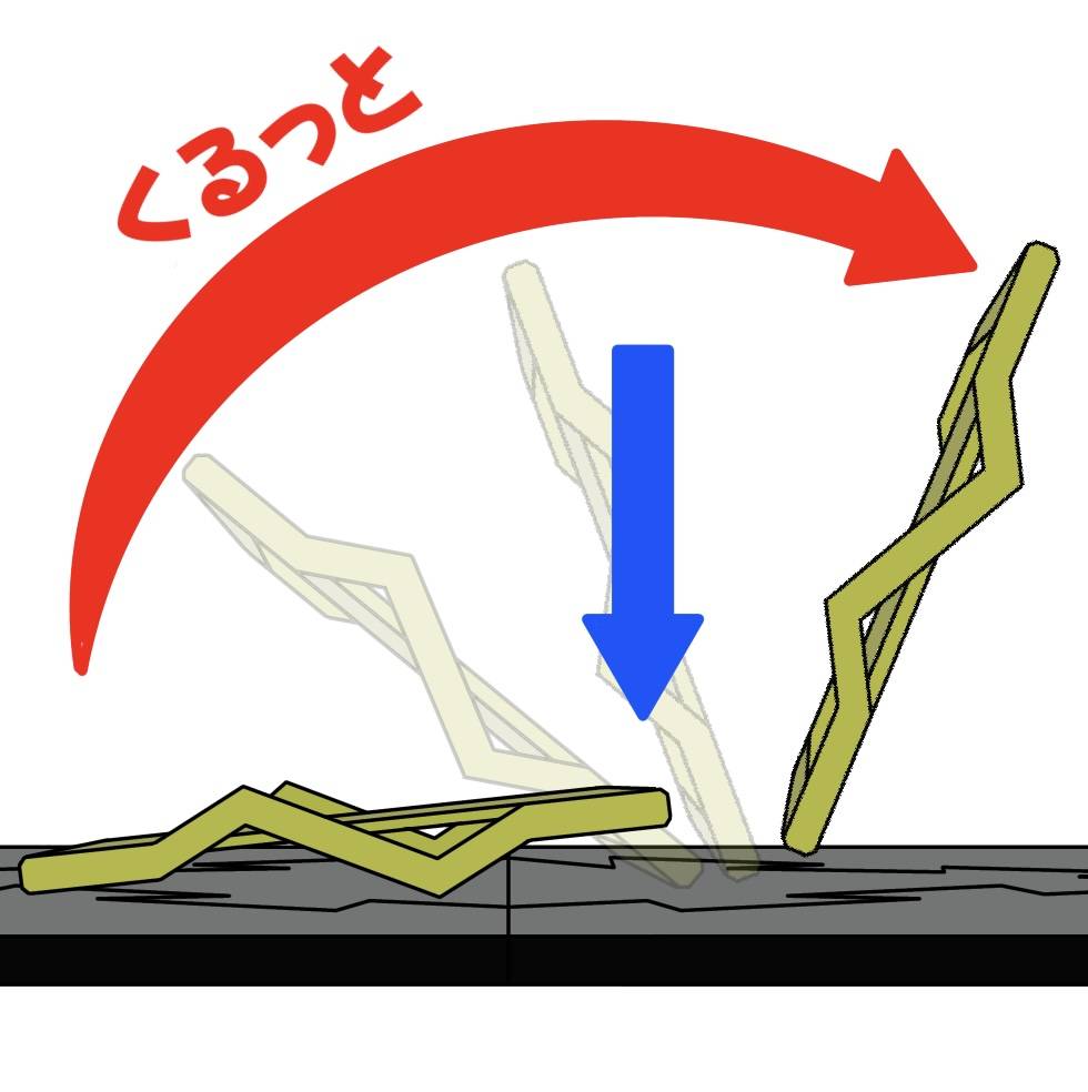 独特な立体形状により、「てこの原理」でくるっとひっくり返るんです。くるっとね。