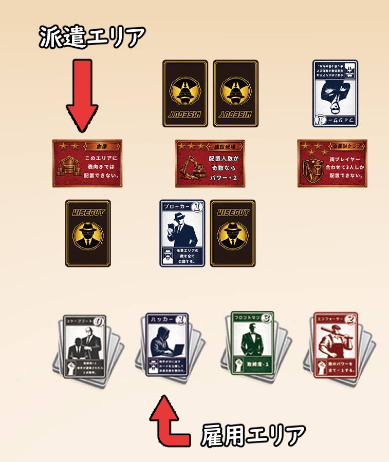 ゲームは 「派遣フェイズ」 と 「抗争フェイズ」 の2つに分かれています。