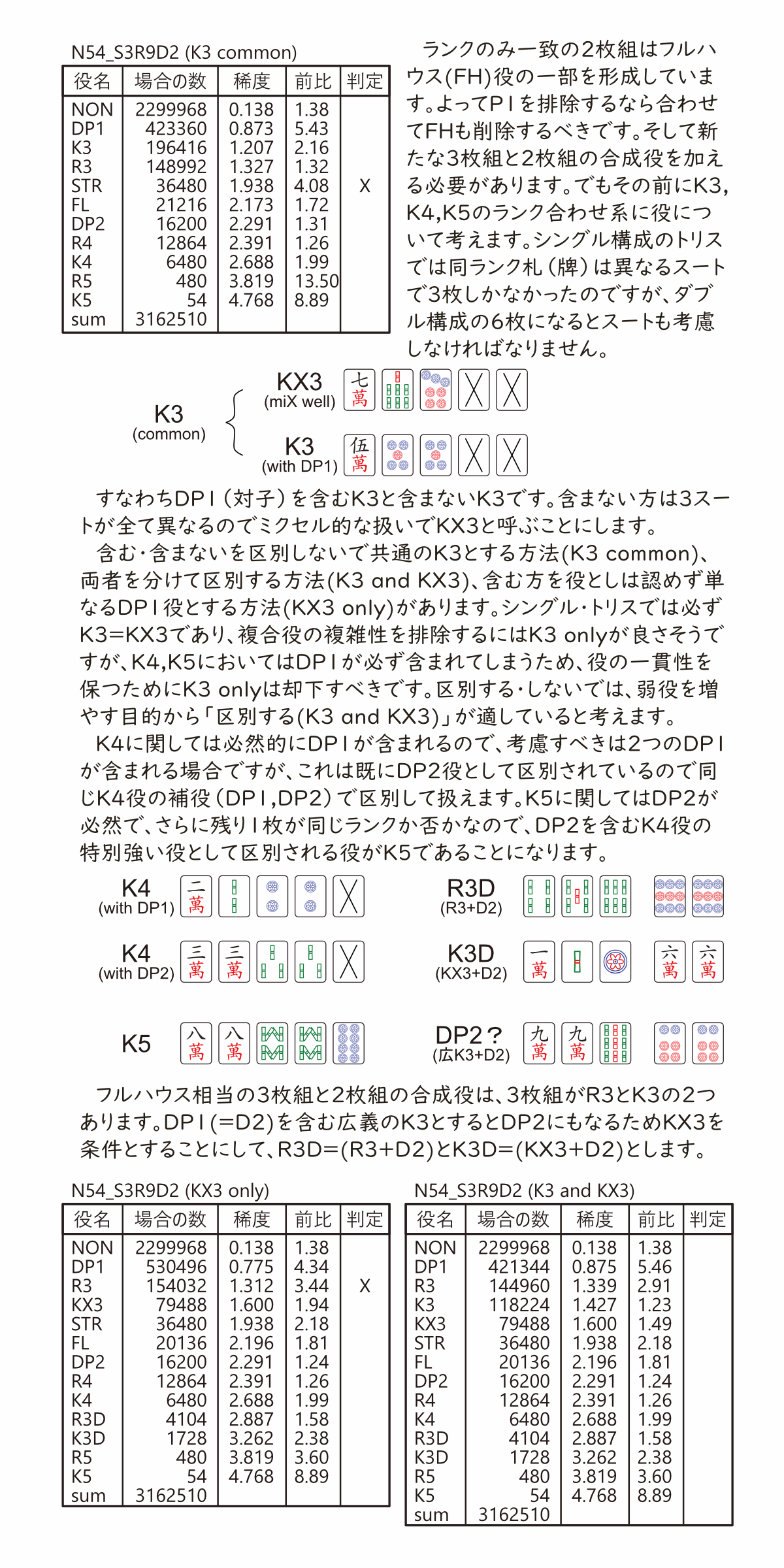 (b)3スート系がトリスタロット(木火水+陰陽)と三元付き半麻雀(三元無し構成が半麻雀でダブルトリス)