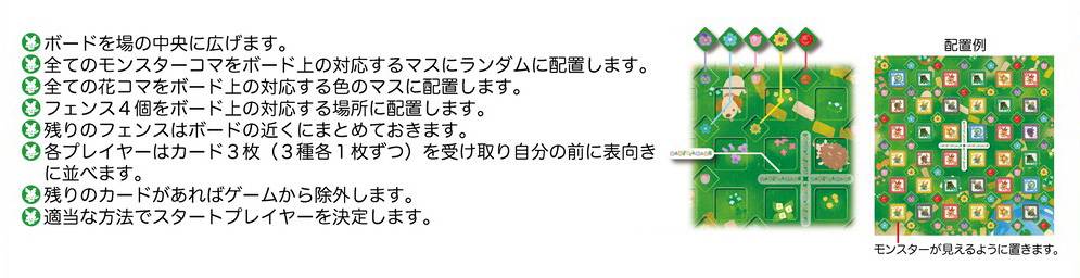 ※獲得したモンスターコマ、花コマ、手札は常に他のプレイヤーからも見れる位置に置いておきます。