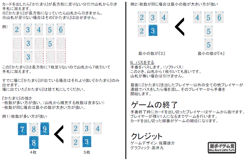 - 出した『かたまり』の形に応じて山札から引き手札に加える