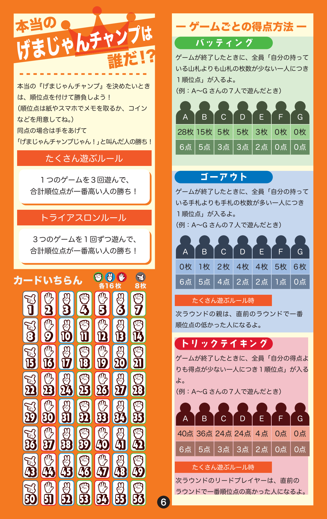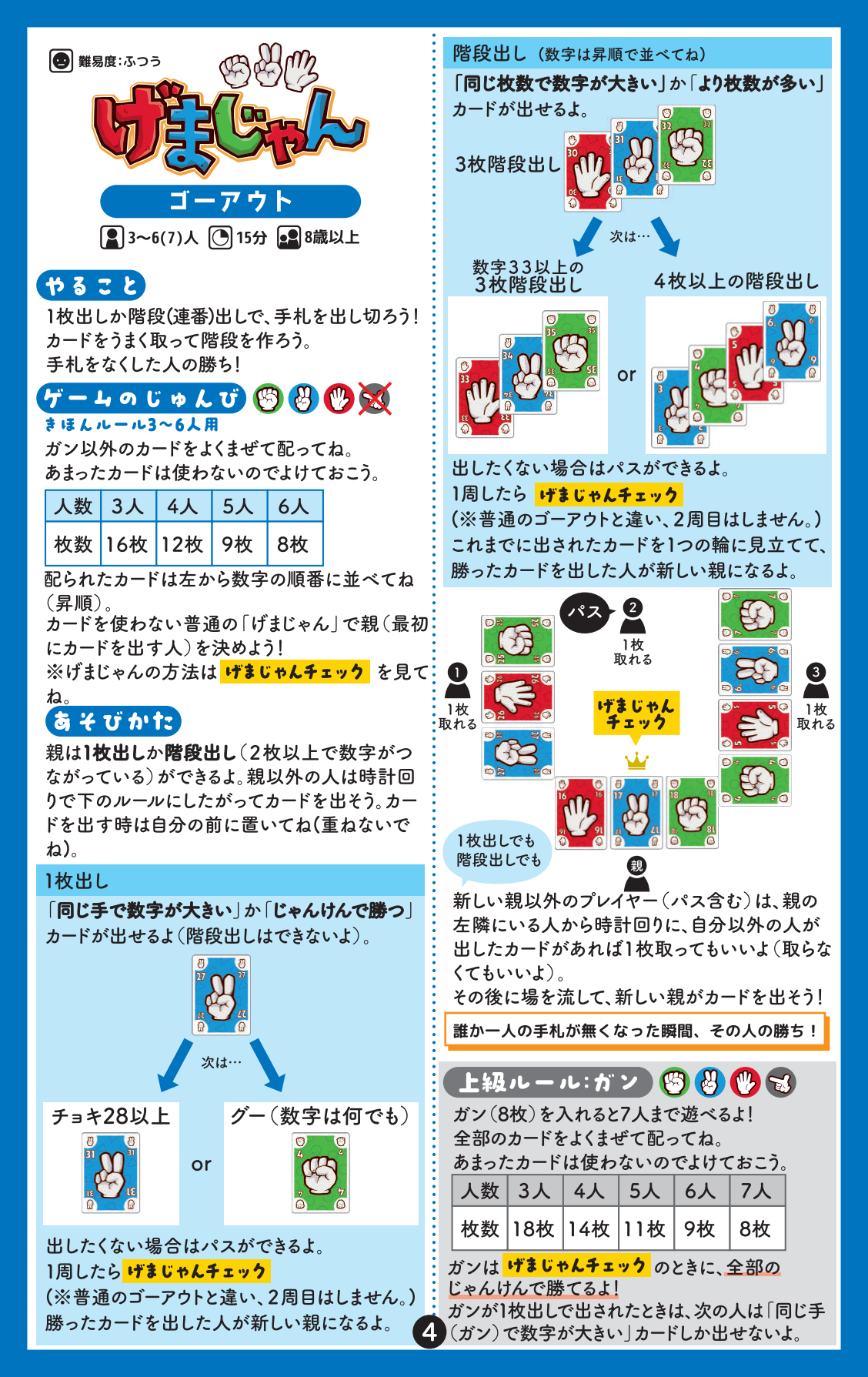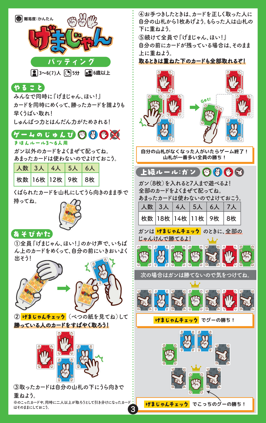 「げまじゃん」には、このゲーマーじゃんけんを使った3種類のルールが収録されています。