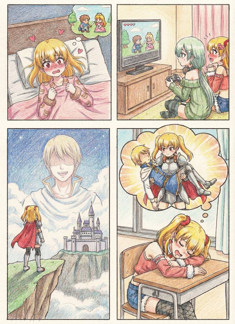 「待ってるだけなんてつまらない!いつか、ワタシもカッコよく王子様を……!ムニャムニャ…」