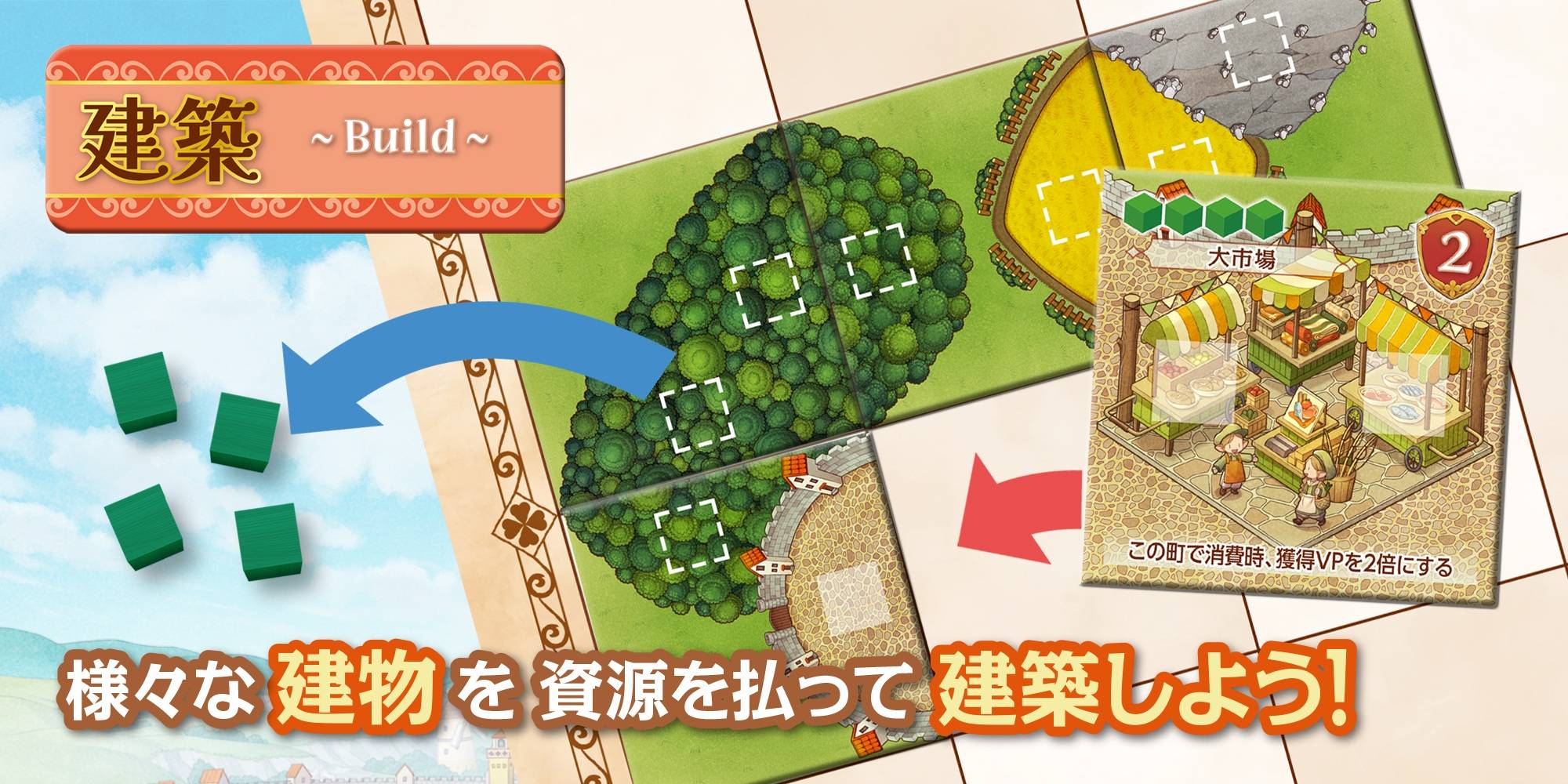 - 町で資源を消費したり、価値ある建物を建てて勝利点を獲得!