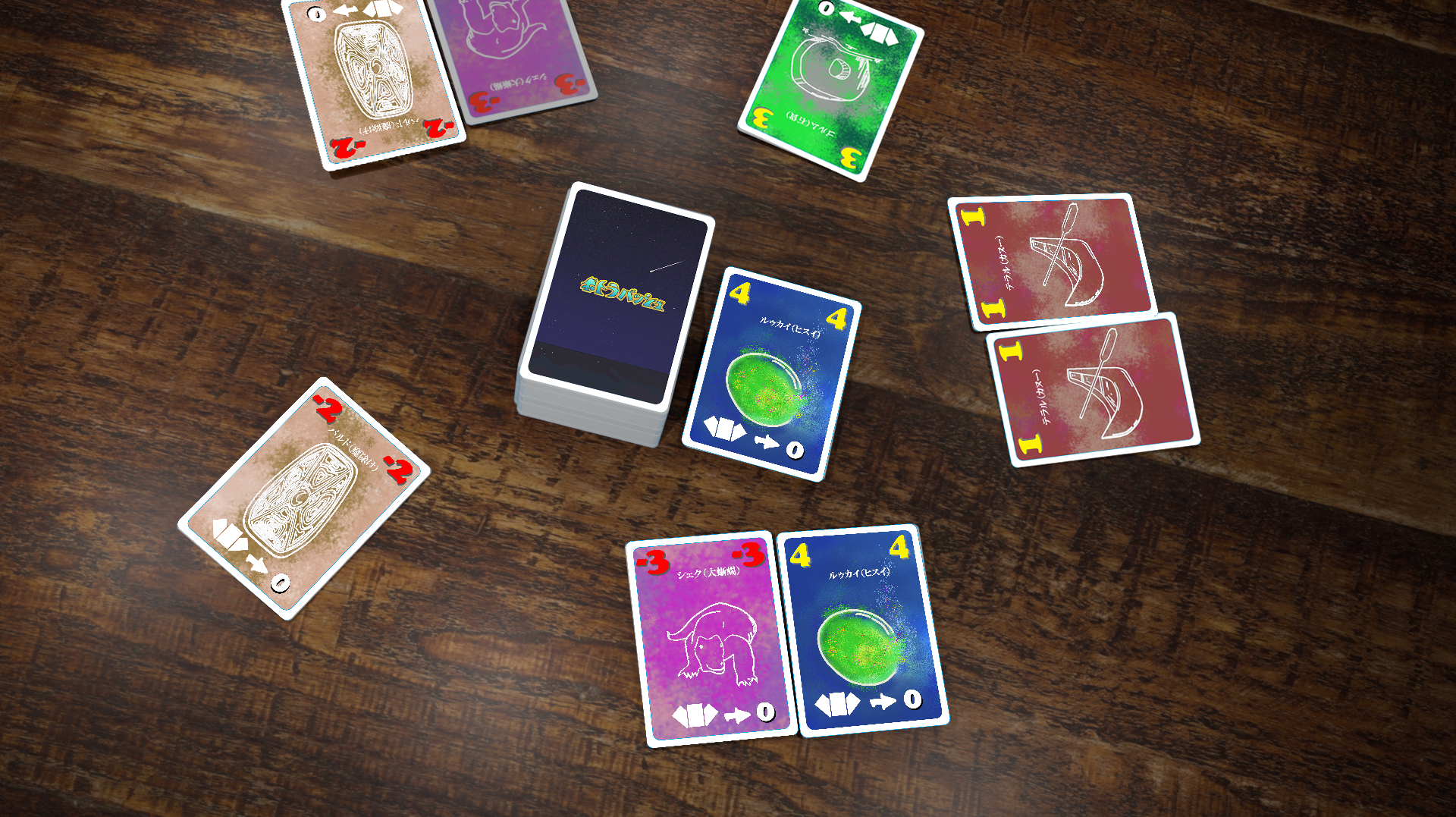 贈り物を回しながら、得点と失点が目まぐるしく入れ替わるカードゲームです!