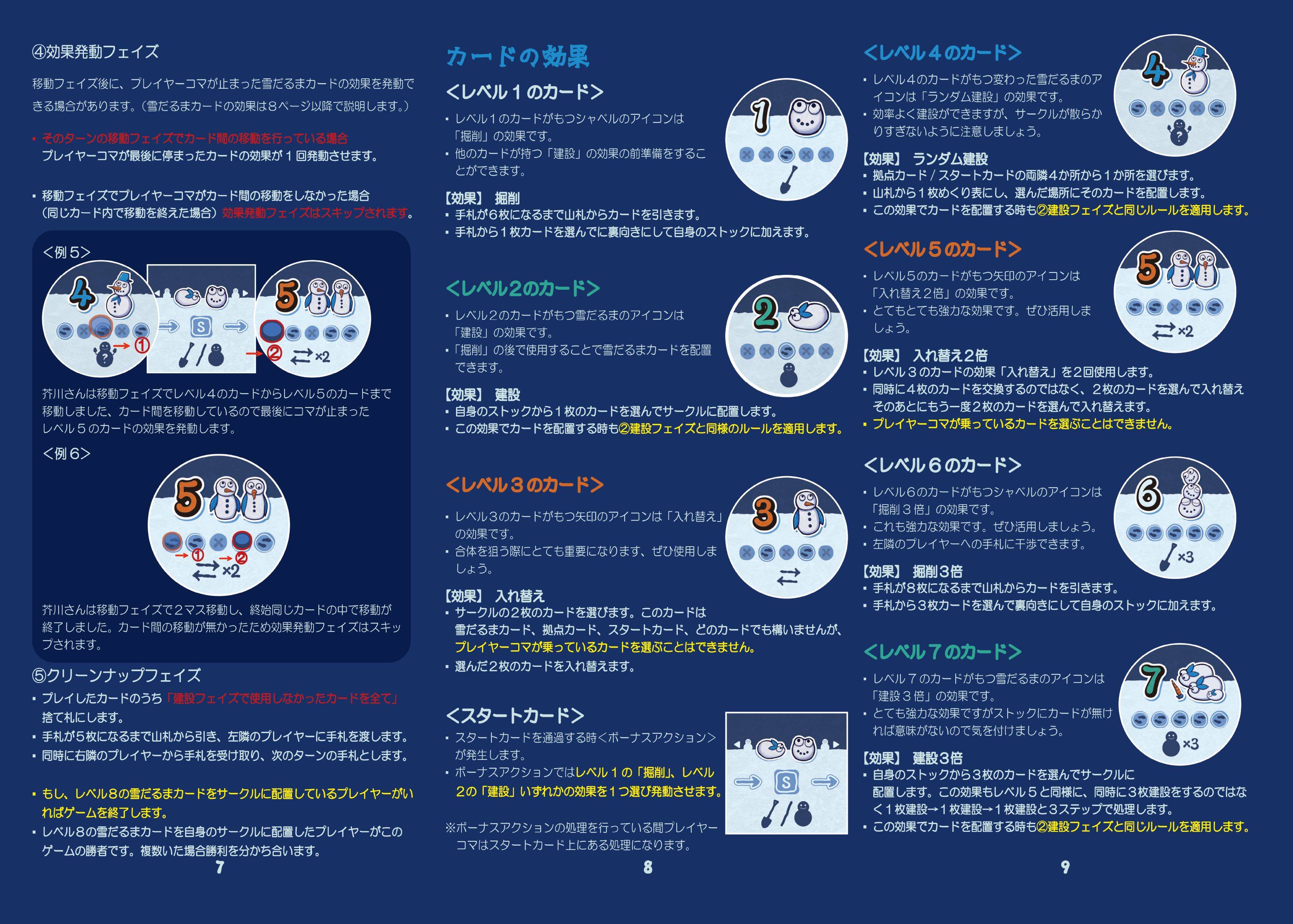 - レベル8の雪ダルマをいち早く作ったプレイヤーが勝利!