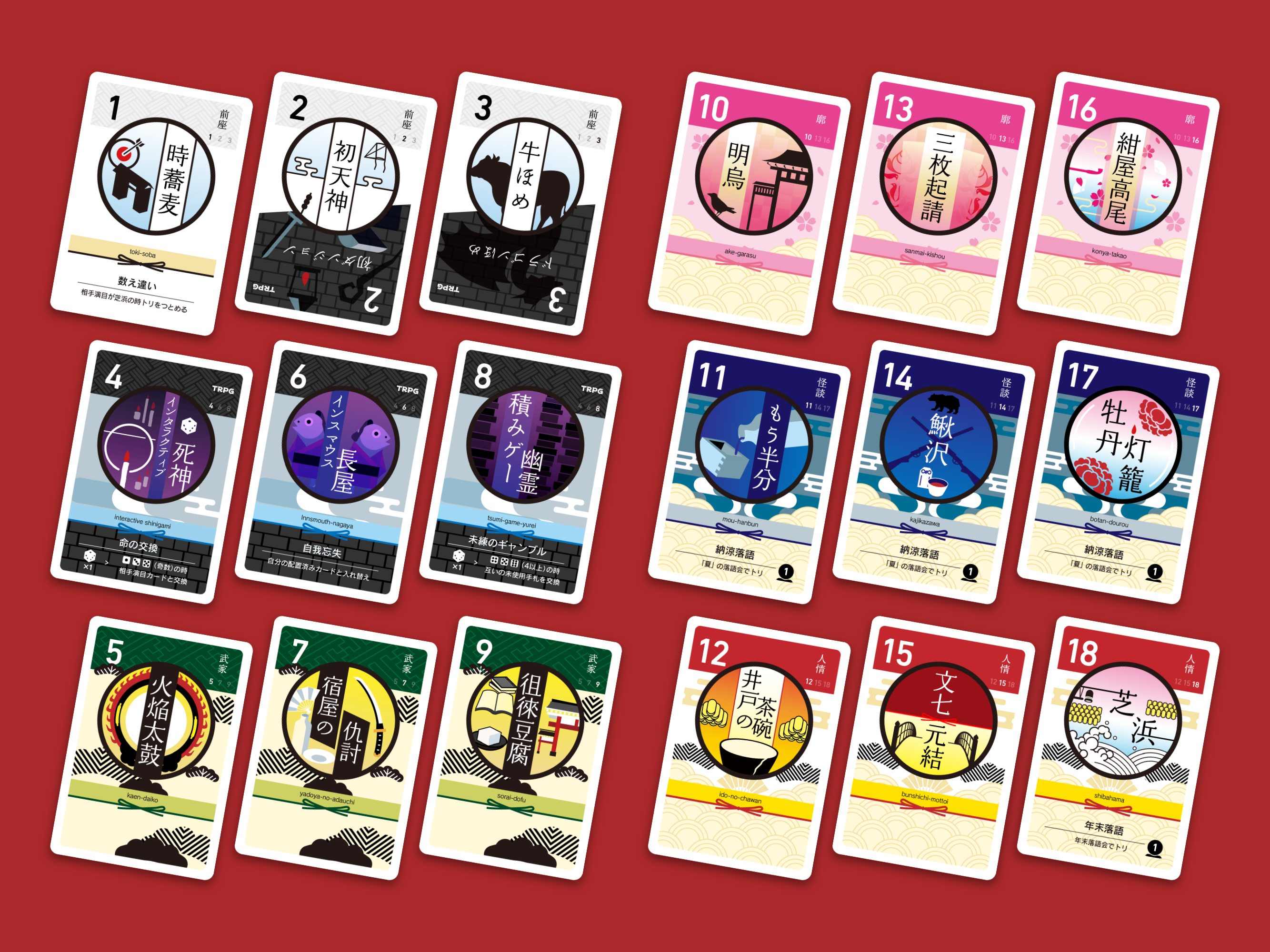 - 大ネタでトリを狙うか?自分の芸を目指すのか?落語の演目カードで勝負!