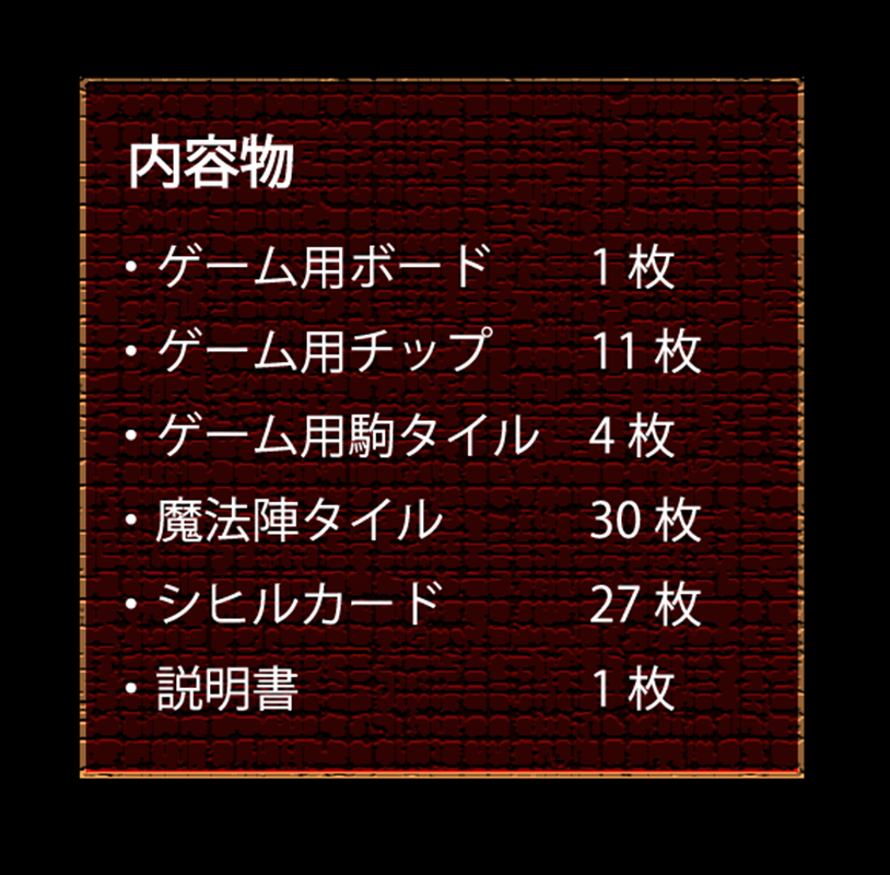 3種類の魔法陣タイルと、9種類のシヒルカードで構成