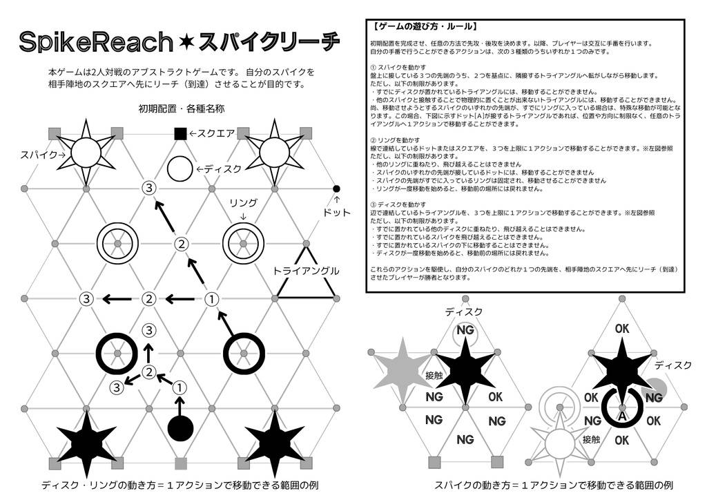 - 自分のトゲトゲ(スパイク)を コロコロ転がしながら相手陣地に到達(リーチ)させる、2人専用の対戦ゲームです。