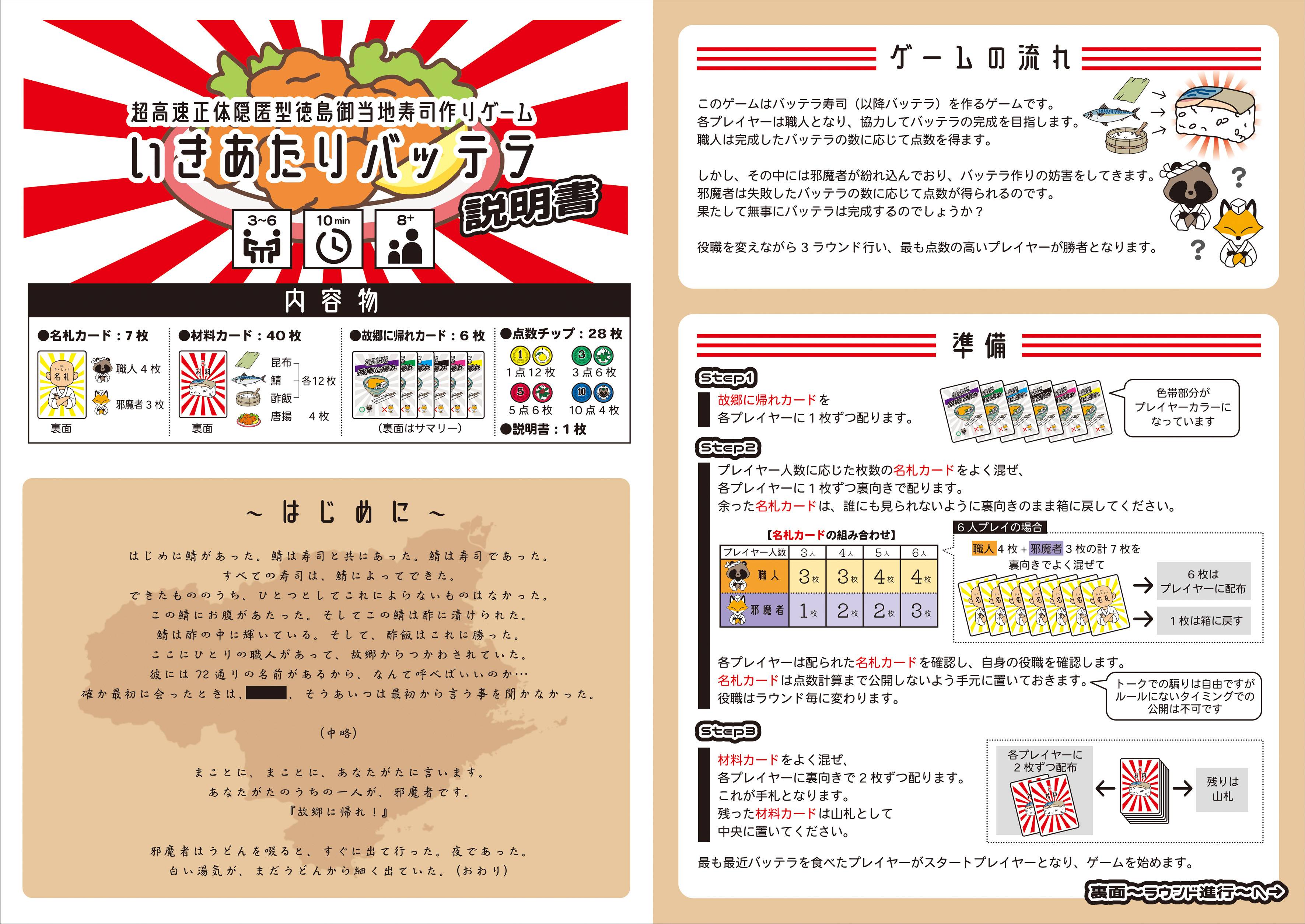 | プレイ人数 | 3〜6人 | プレイ時間 | 8〜10分 |