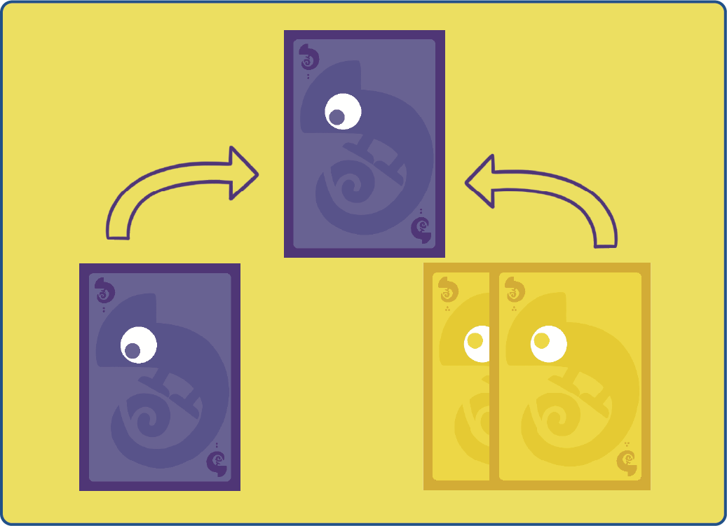 同じ色のカメレオンをちょうど8枚集めることができれば、もう一度行動できる!