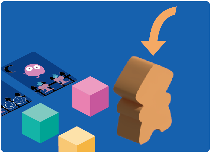各ラウンドでは、コマやダイス人をカード列に配置し、その後の解決順や成功率に影響を与えます。 配置が終わるとダイスを振って成功判定を行い、成功すればカードを獲得できます。