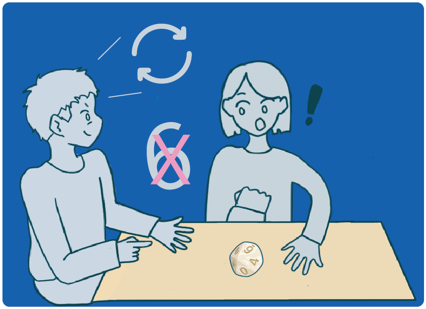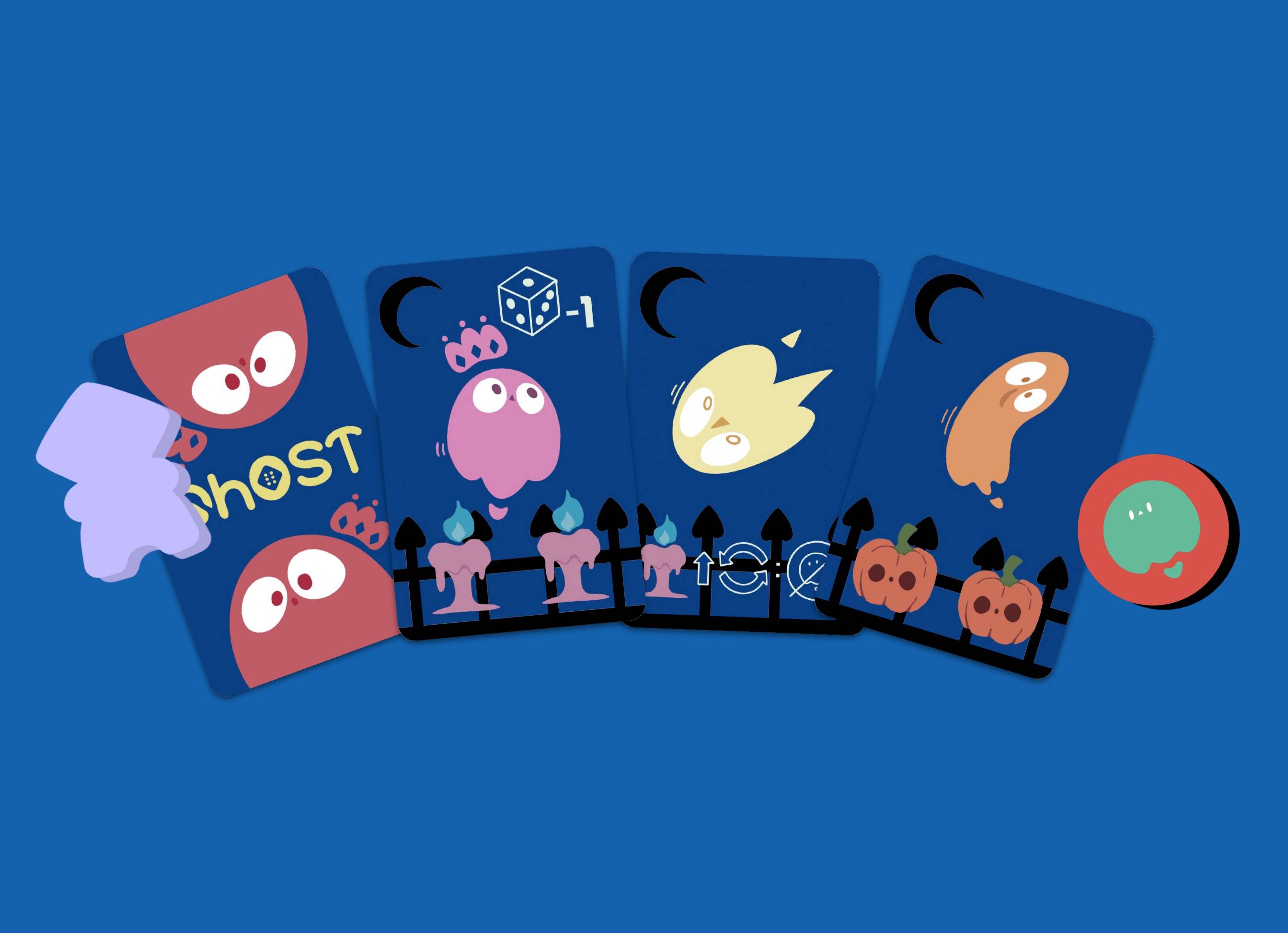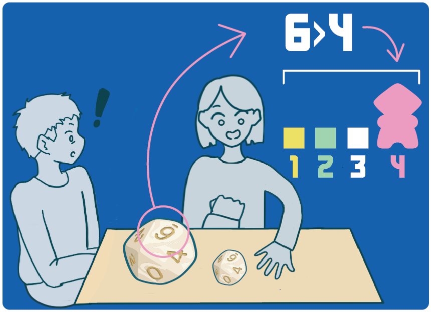 後から来た人から先にダイスを振る。出目が並んでいる人数を上回れば、小さな幽霊を捕まえられる。