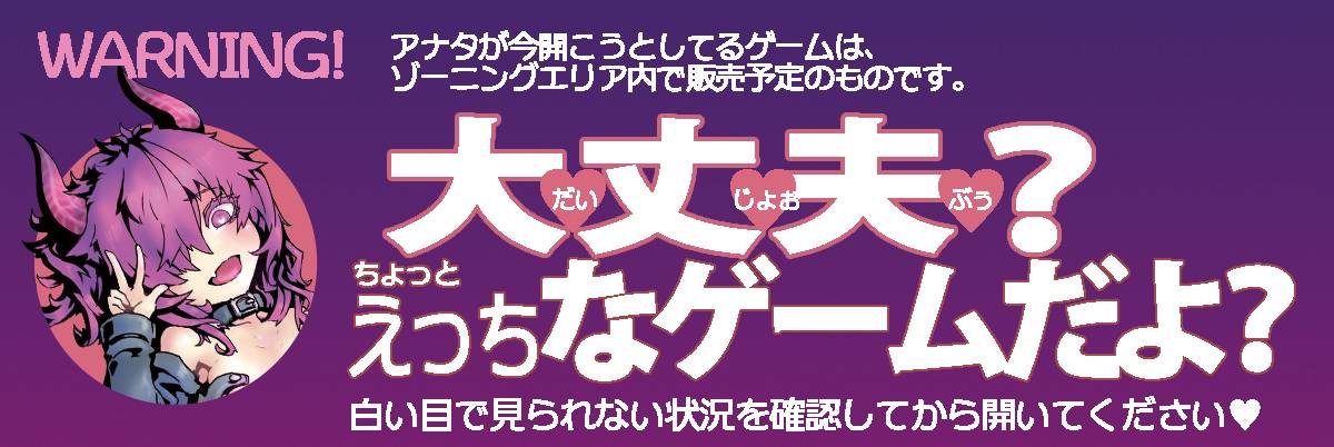 【!】ただし、露骨なグラフィックといえども、局部の露出や出血・暴力などのショッキングな絵は存在しません。レーティングではR-18に相当することがあるかもしれませんが、局部が露出したりといった完全なR-18作品とは言えませんので、あらかじめご了承ください。