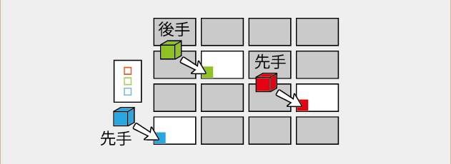 後手プレイヤーも同様に行い、これを交互に続けます。