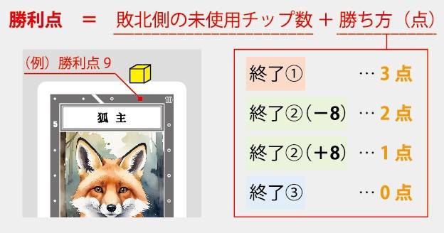 ・勝利点が8点以上の場合、2回目のゲームでは能力ルール(次項)のハンデが付きます。