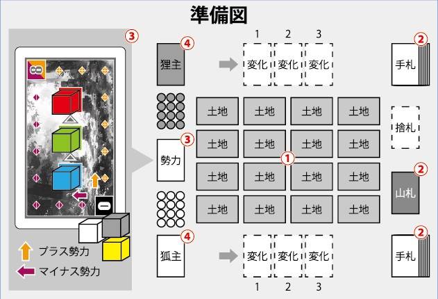 ④ 最も山を好きなプレイヤーが狐主を担当し、先手プレイヤーとなります。