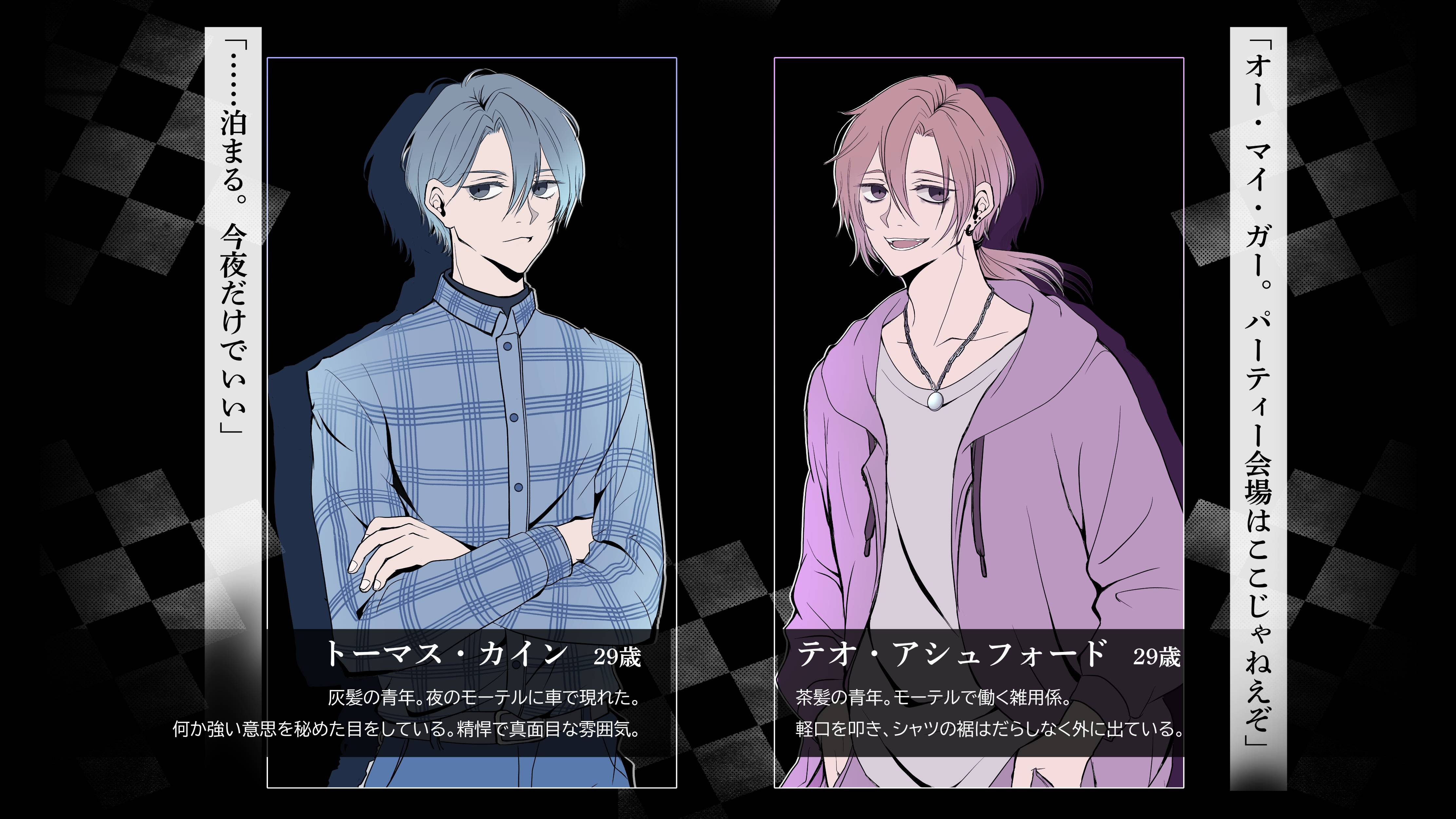 2人の男性キャラクターで描かれる、2人用マーダーミステリー