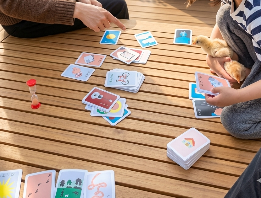 誰かと同じカードを指差せたら成功!7ラウンドで目標点に届けばクリア!