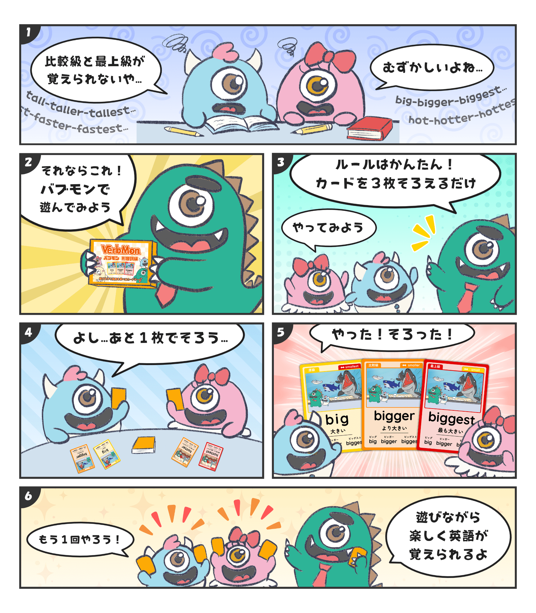 - big / bigger / biggest などの変化をゲーム感覚で習得!
