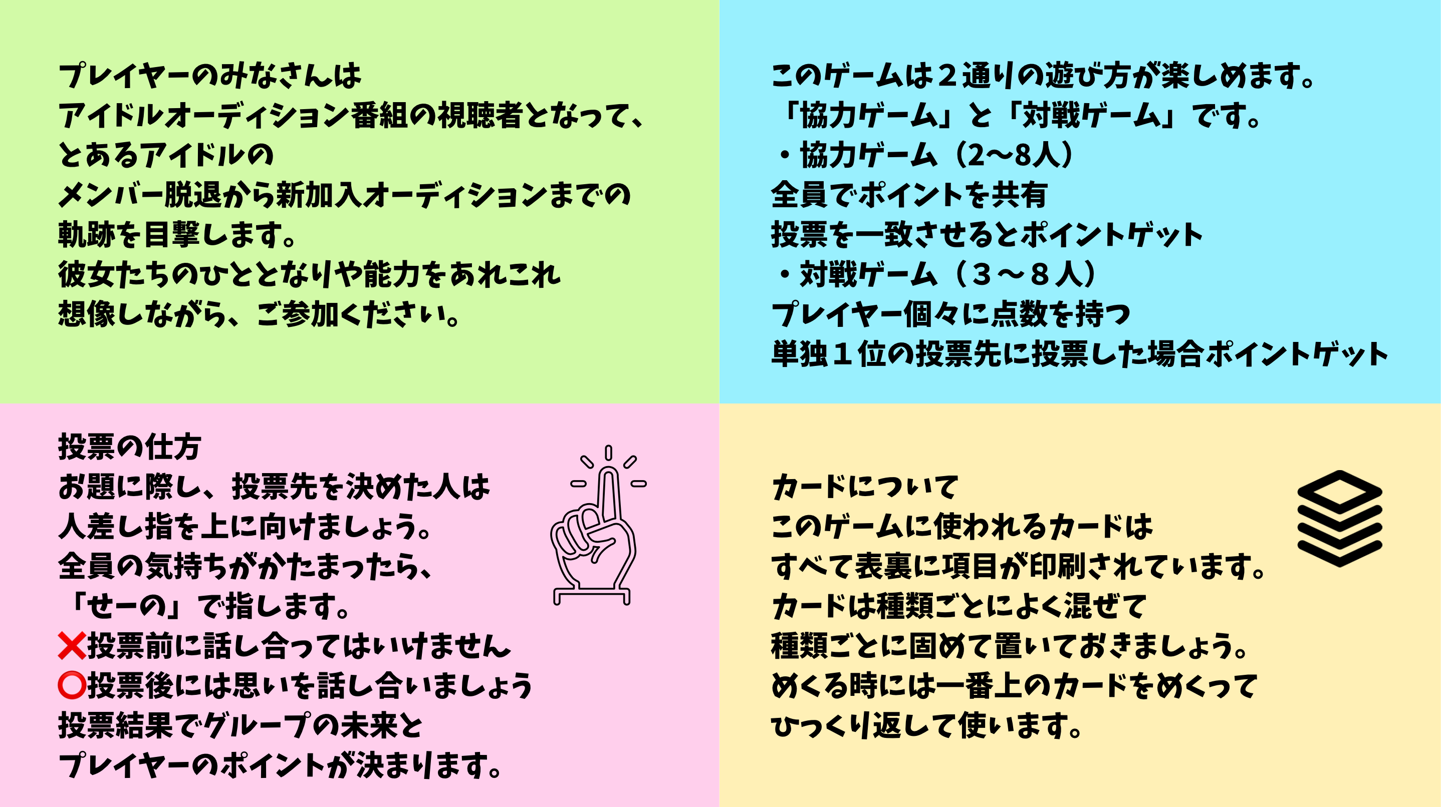 | プレイ人数 | 2〜11人 | プレイ時間 | 30〜30分 |