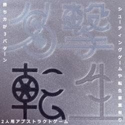 - こんにちわっ。ゲームさむおどです。ゲームマーケット2026春にチャック横丁の枠で出展します!日曜のみで、試遊ありです。新作アブスト『名撃転生』(読み:めいげきてんせい)を販売します。弾丸を撃って相手を牽制しつつ、ゴールを目指す2人用アブストラクトゲーム(将棋やチェスなどの運要素のないゲーム)です。勝利パターンが3通りあり、弾丸を撃つだけでも勝てます。相手の弱点に撃ち込めはクリティカルで勝てます。あと、ゴールしてもクリティカル勝利です。「名古屋撃ち」(シューティンゲームにおける撃ち方の一つ)と「転生」がモチーフで、かなり逆転のチャンスがあるゲームになっています。コマの動かし方は「15パズル」と似ているので頭のトレーニングにもなるかもしれません。鋭意制作中で、その様子はXからご覧いただけます。https://x.com/game_samuodo予約受付もおってします。会場でお会いしましょう!