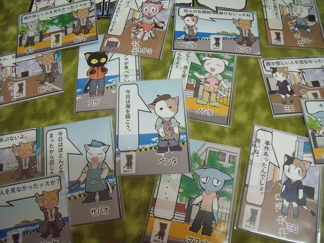 いま白猫人形の隣にある捜査カードが聞き込みする人たちです。