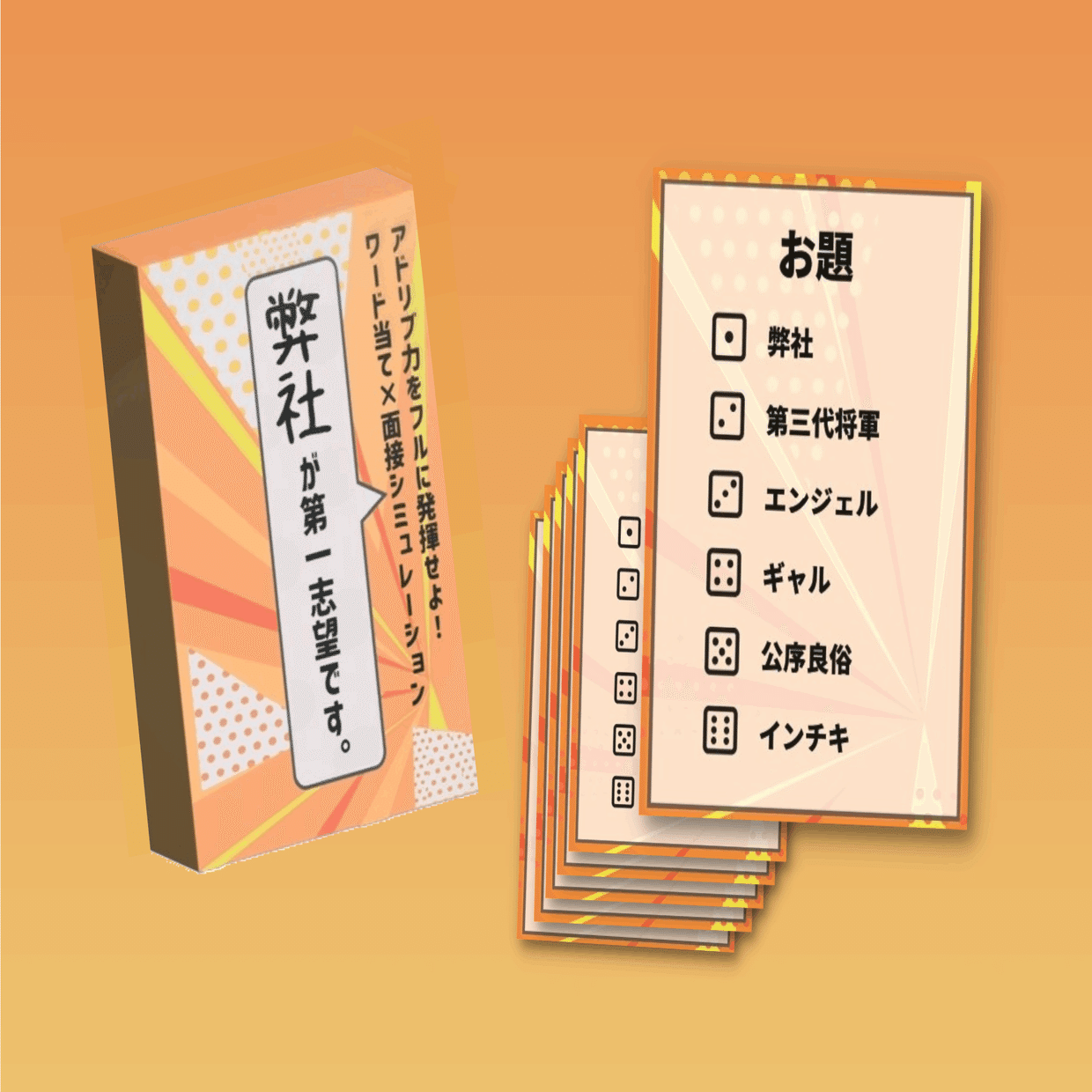 面接独特の緊張感にシュールなワードが飛び出すカオスな状況が笑いを誘う、軽量級のアドリブパーティーゲームです。