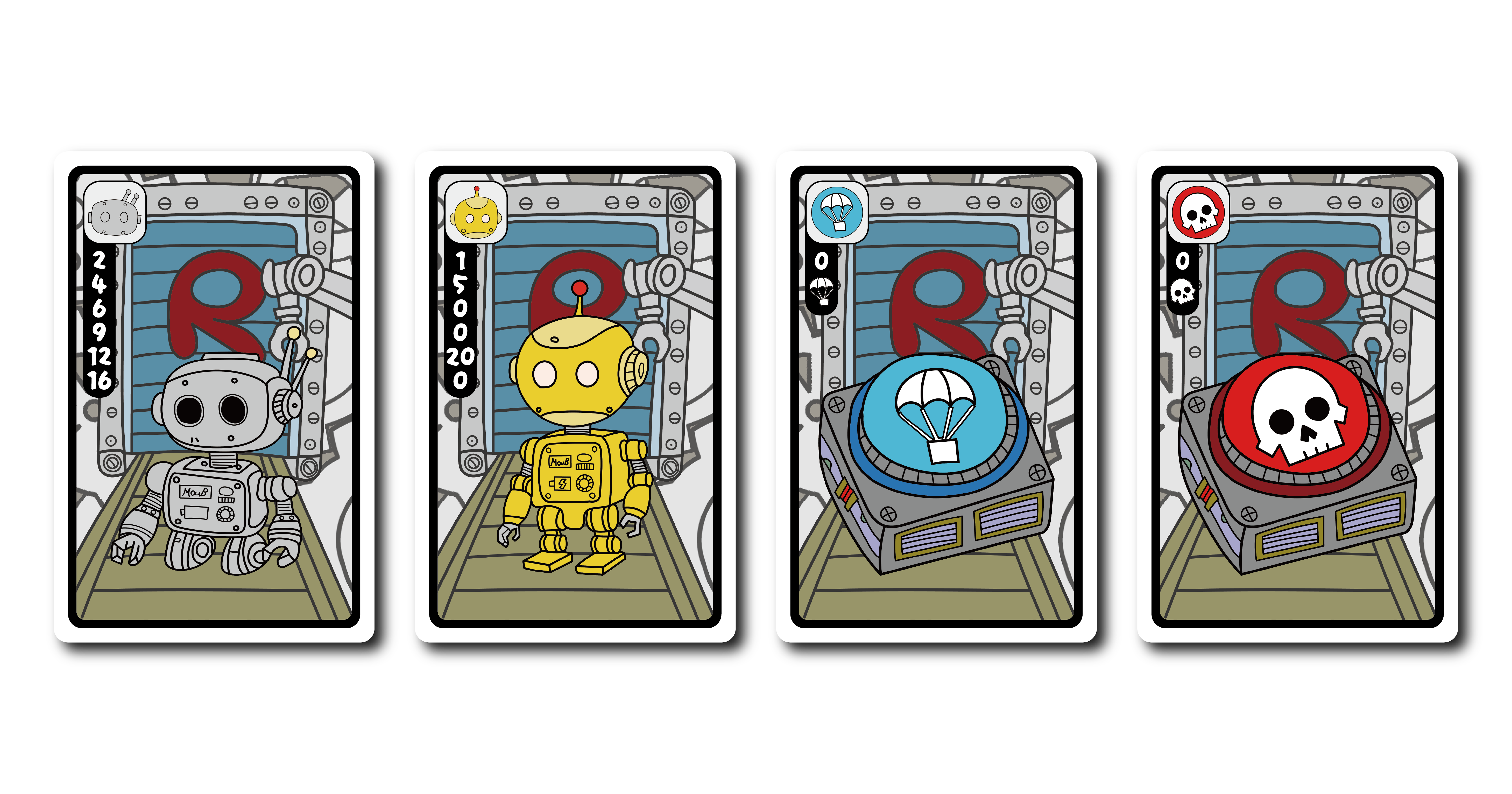 取ったカードがロボットであれば得点に関わり、スイッチであればラウンドから離脱・脱落の恐れが...