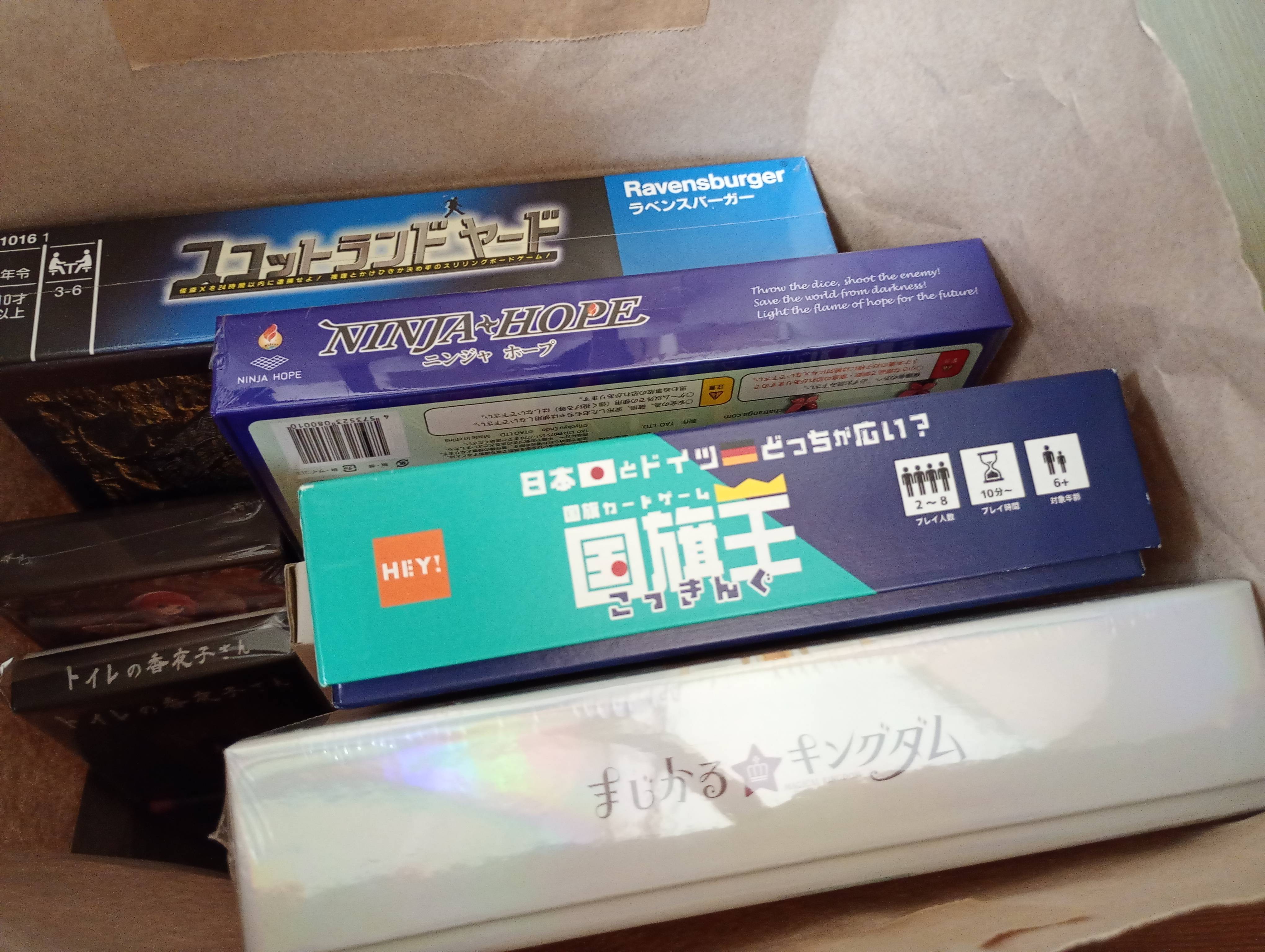 ボードゲーム(新品・中古)や、協賛店舗のクーポンなどが当たるクジを引くことができますよ!
